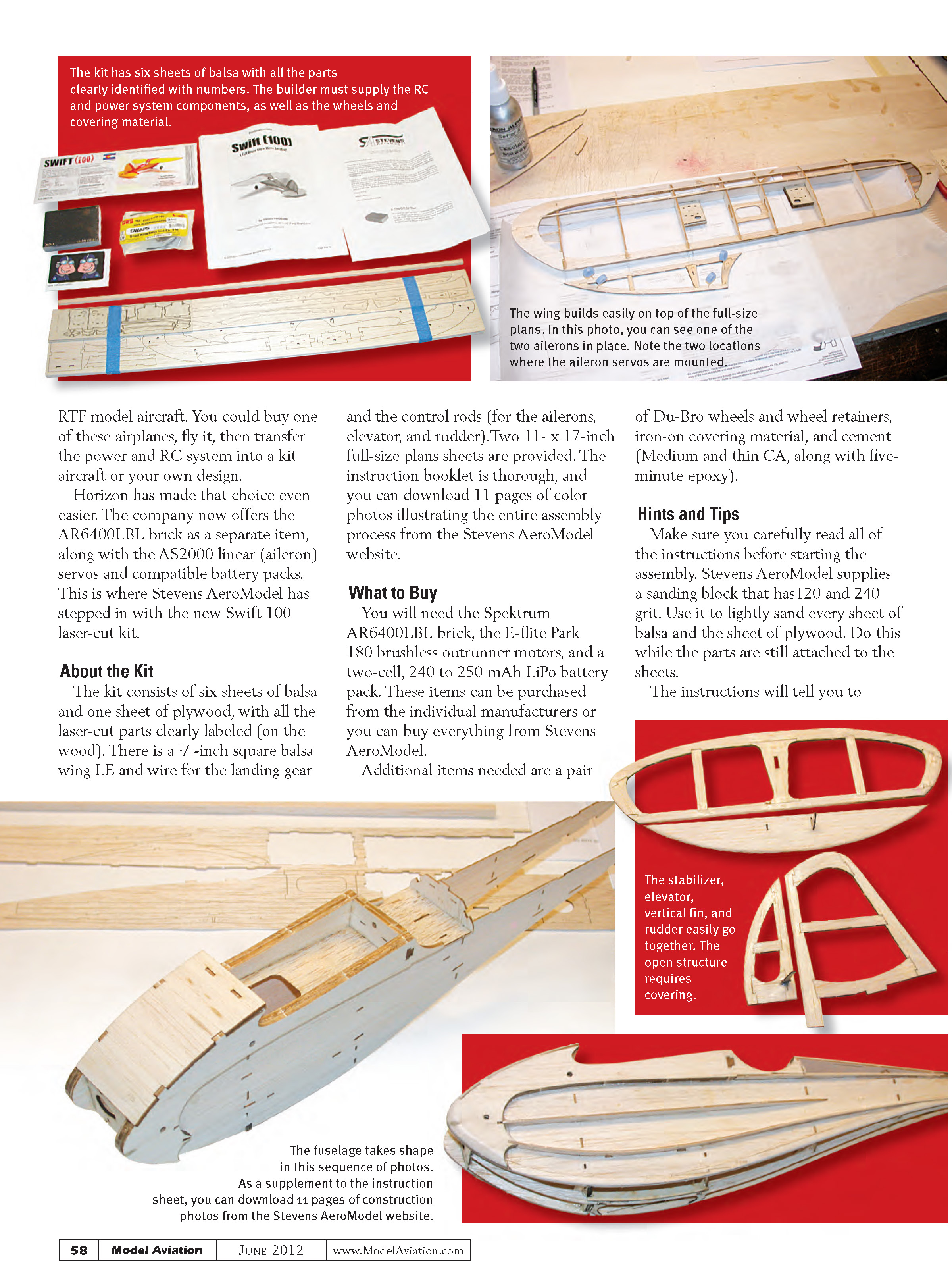 The kit consists of six sheets of balsa