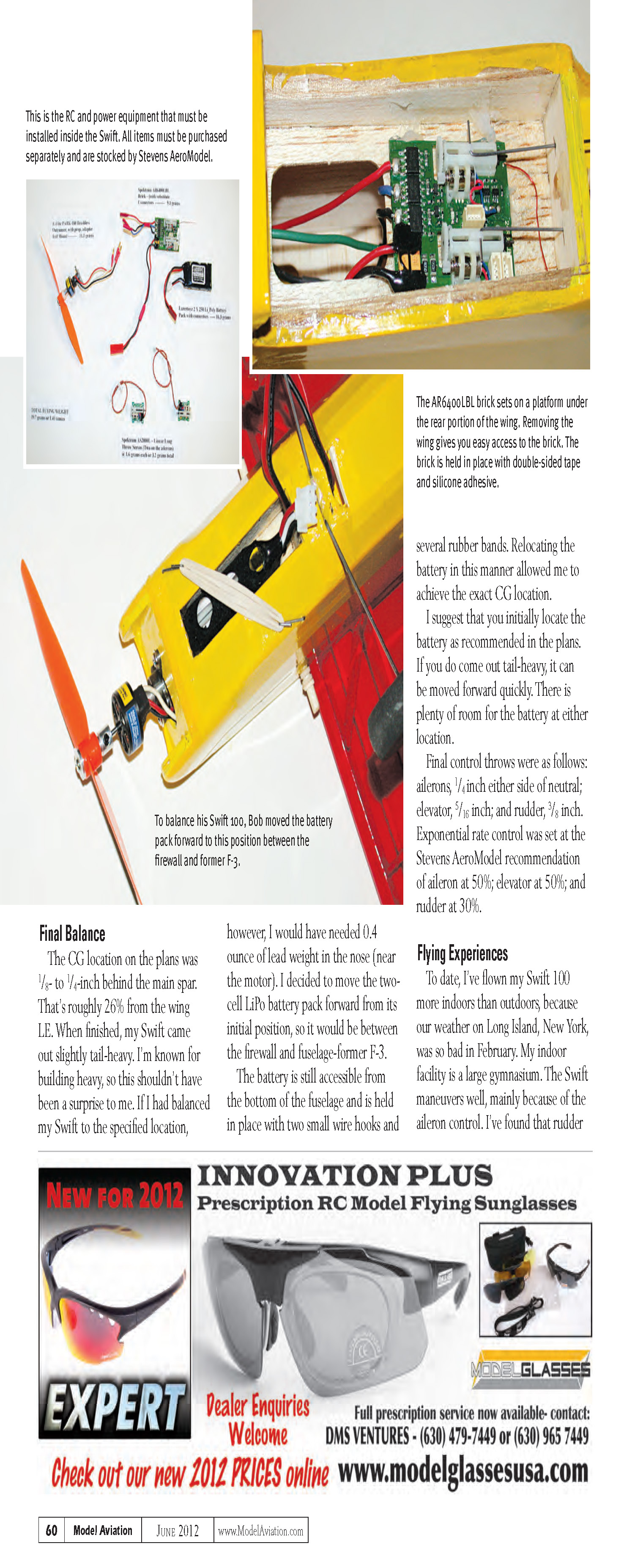 and silicone adhesive. To balance his Swi 100, Bob moved the battery