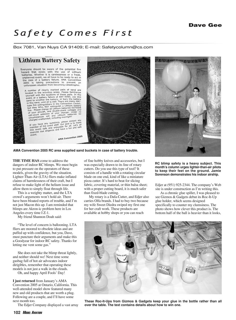 Box 7081, Van Nuys CA 91409; E-mail: Safetycolumn@cs.com