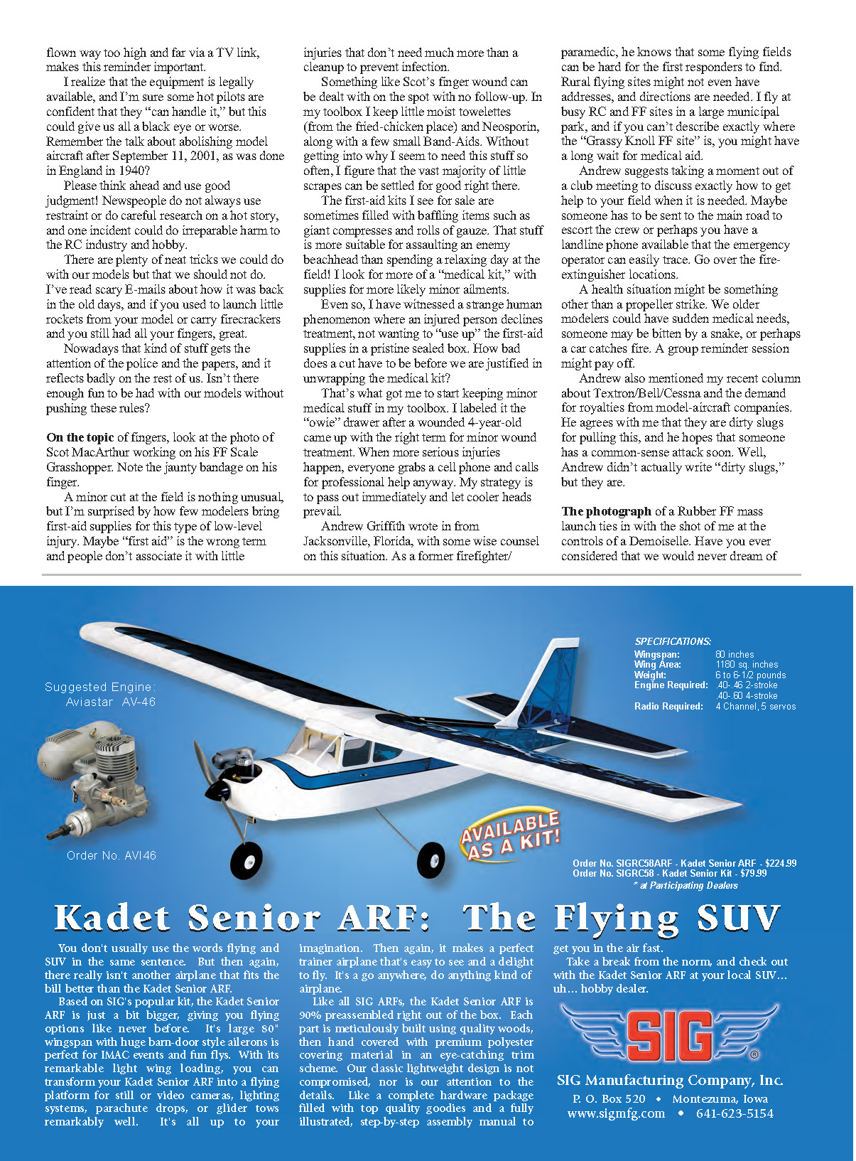 Order No. SIGRC58ARF - Kadet Senior ARF - $224.99