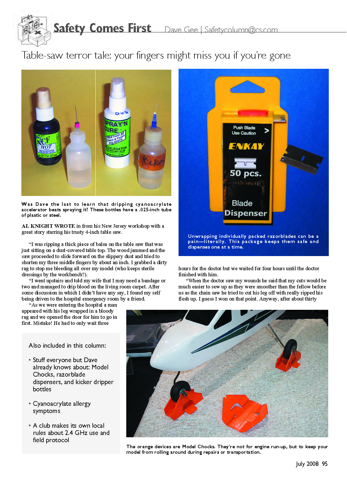 Safety Comes First Dave Gee | Safetycolumn@cs.com