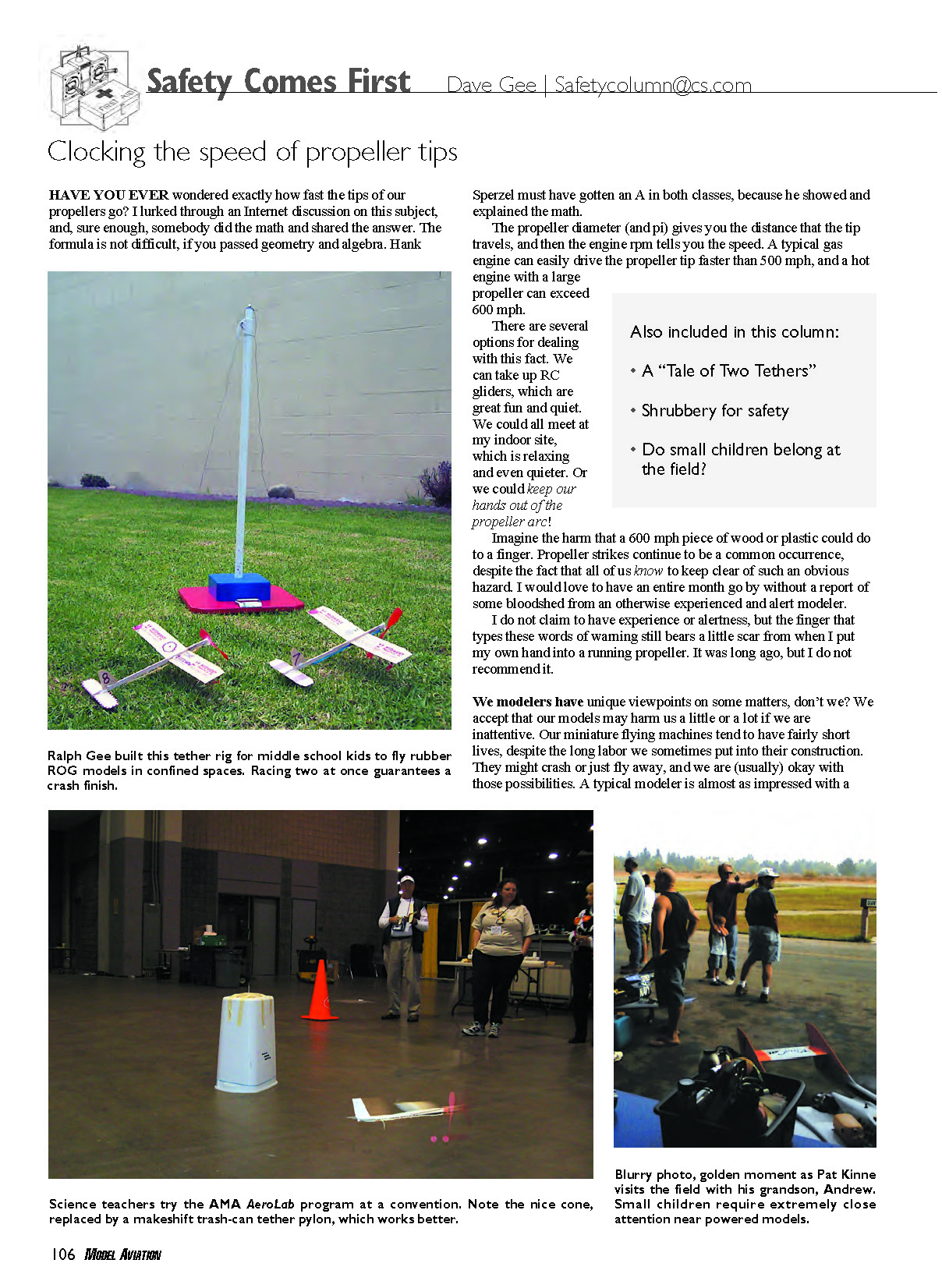 Safety Comes First Dave Gee | Safetycolumn@cs.com