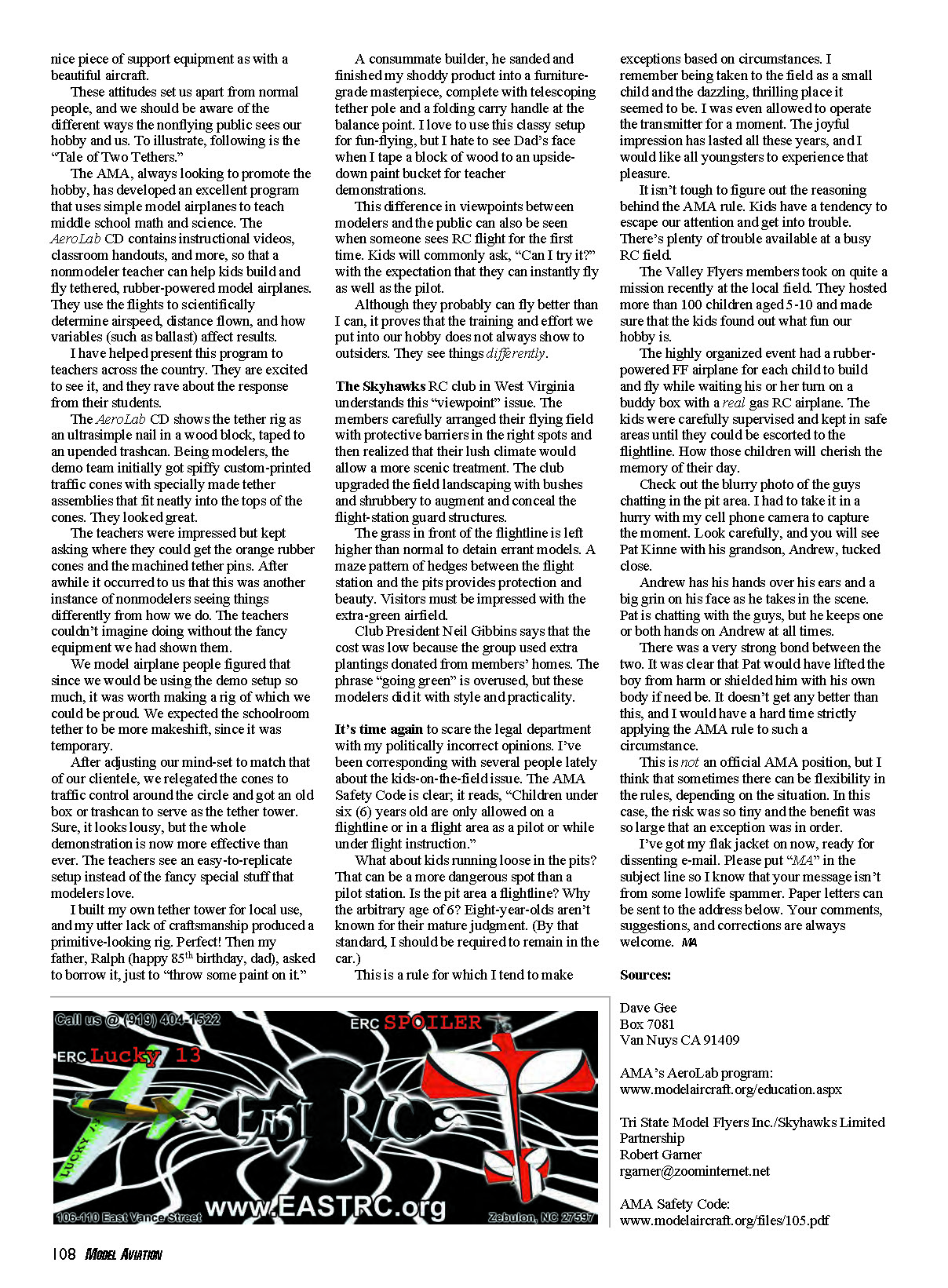 Ralph Gee built this tether rig for middle school kids to fly rubber