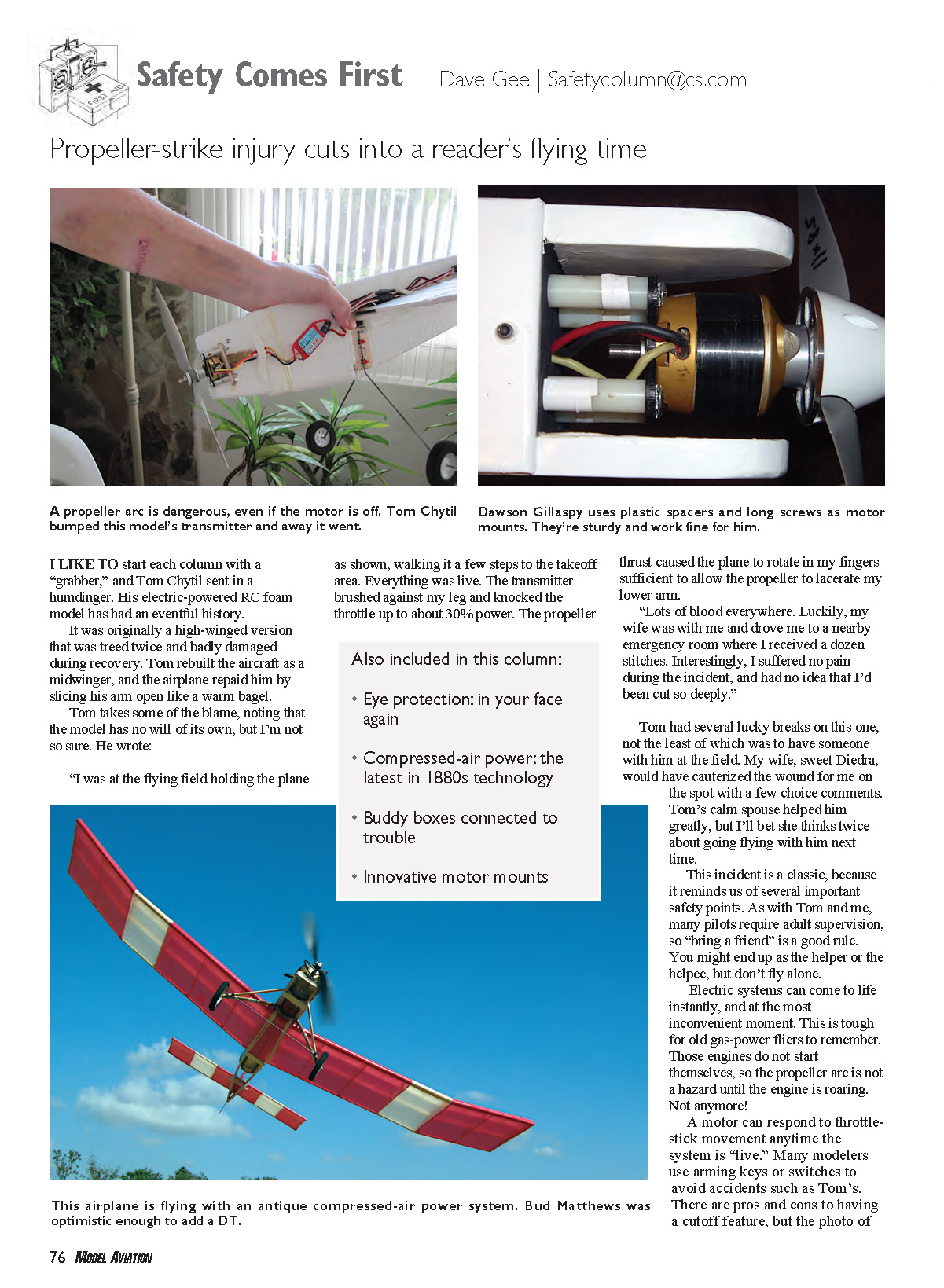 A propeller arc is dangerous, even if the motor is off. Tom Chytil