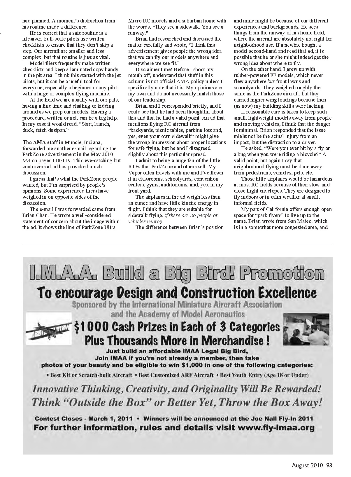 ParkZone advertisement in the May 2010
