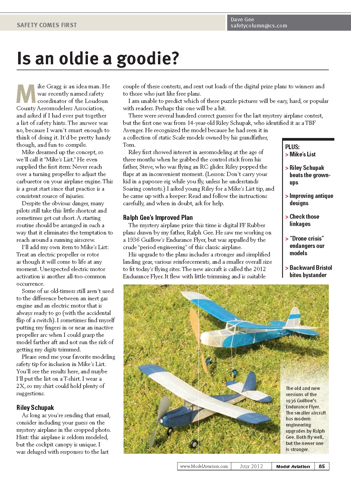 Soaring contests.) I asked young Riley for a Mike’s List tip, and