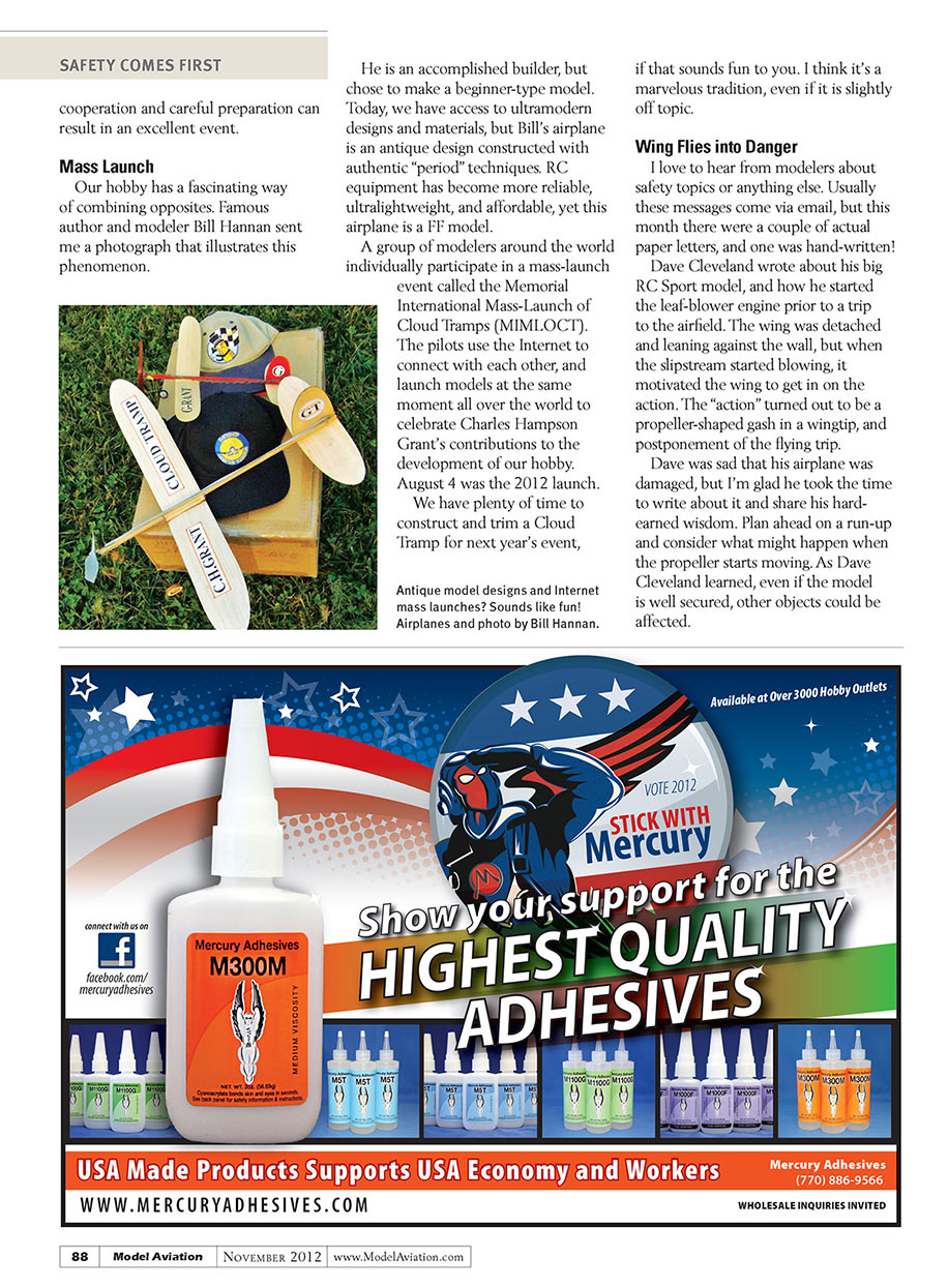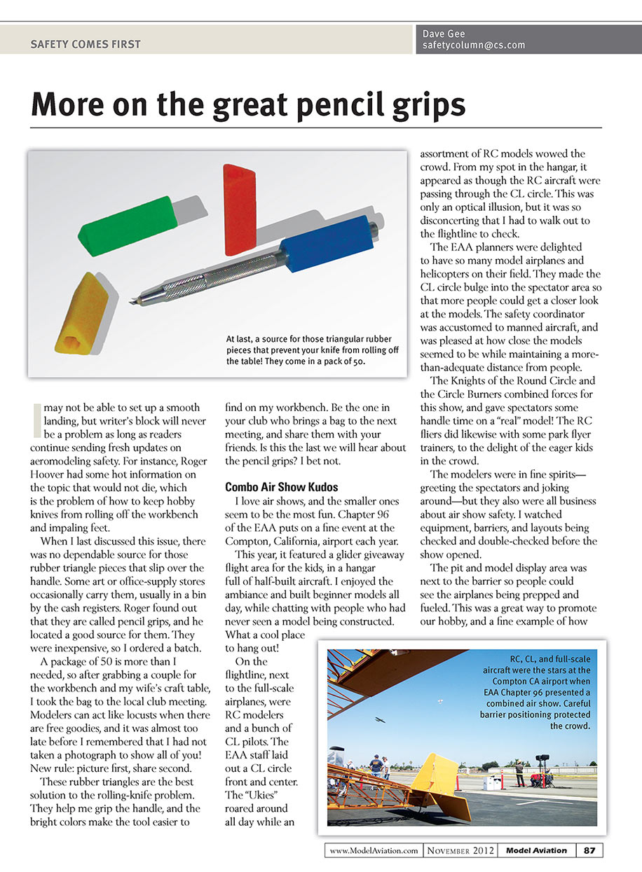 I love to hear from modelers about safety topics or anything else. Usually these messages come via email, but this month there were a couple of actual paper letters, and one was hand-written!
