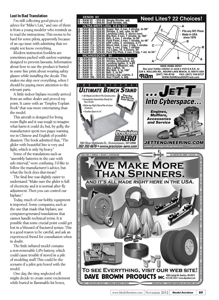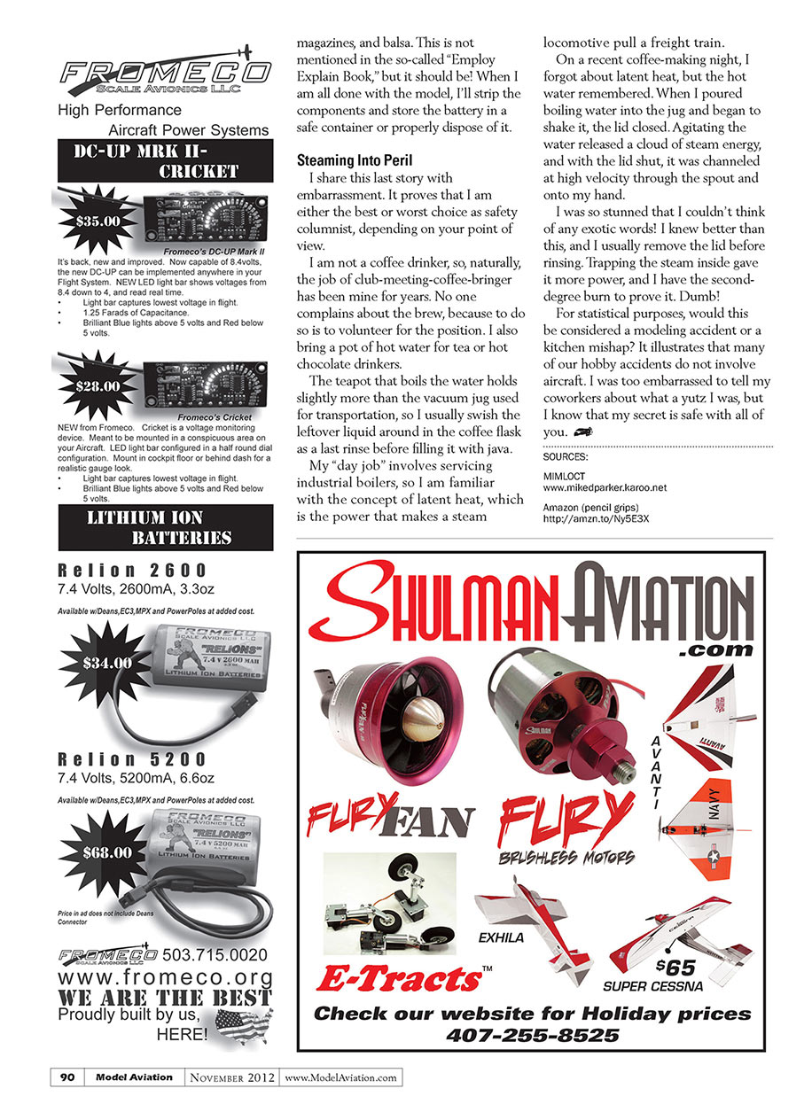 magazines, and balsa. This is not mentioned in the so-called “Employ Explain Book,” but it should be! When I am all done with the model, I’ll strip the components and store the battery in a safe container or properly dispose of it.