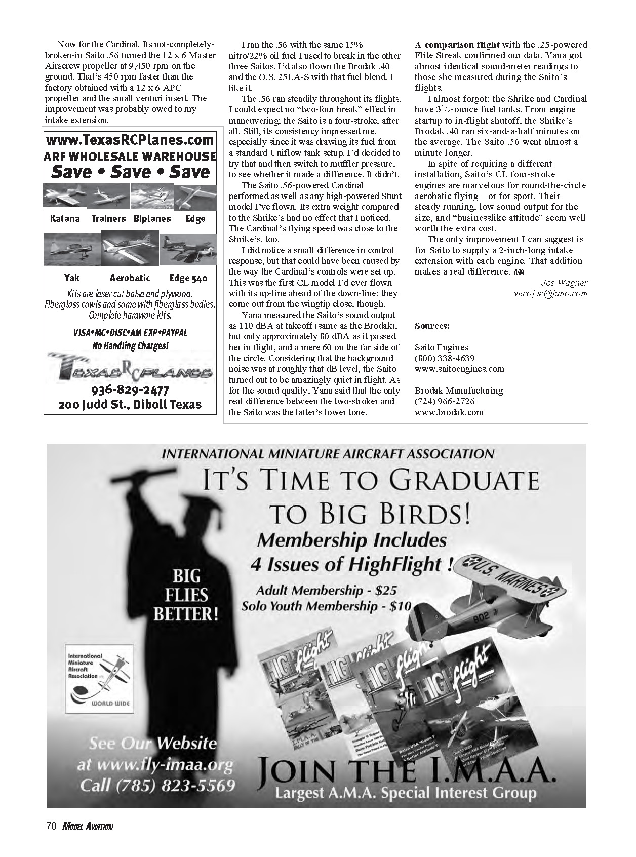 three Saitos. I’d also flown the Brodak .40