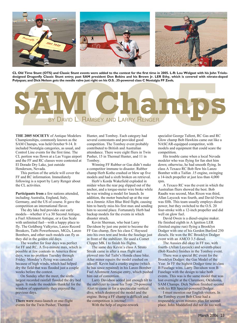 Polyspan; and Dick Nelson gets the needle valve just right on his O.S. .35-powered class C Nostalgia FF Zeek.