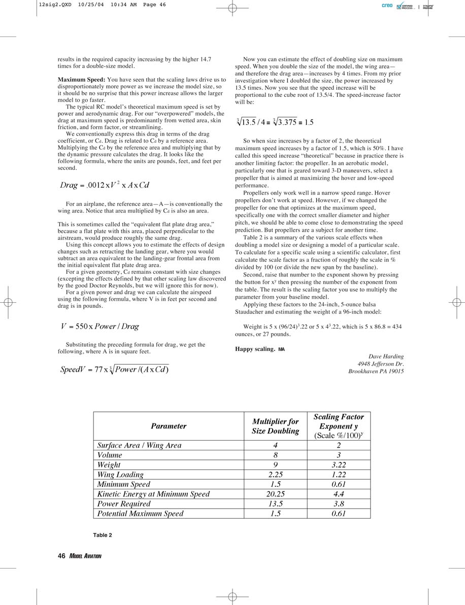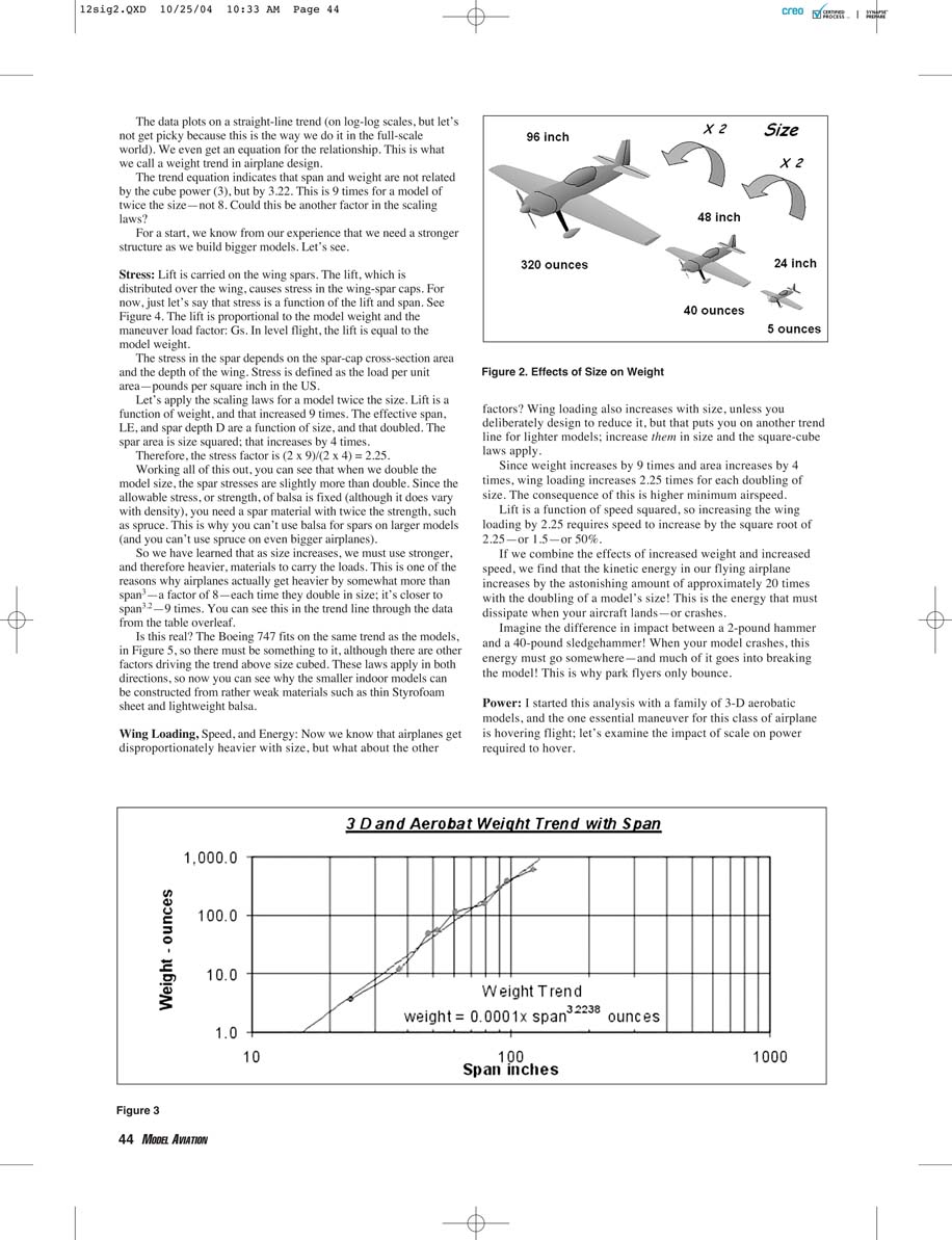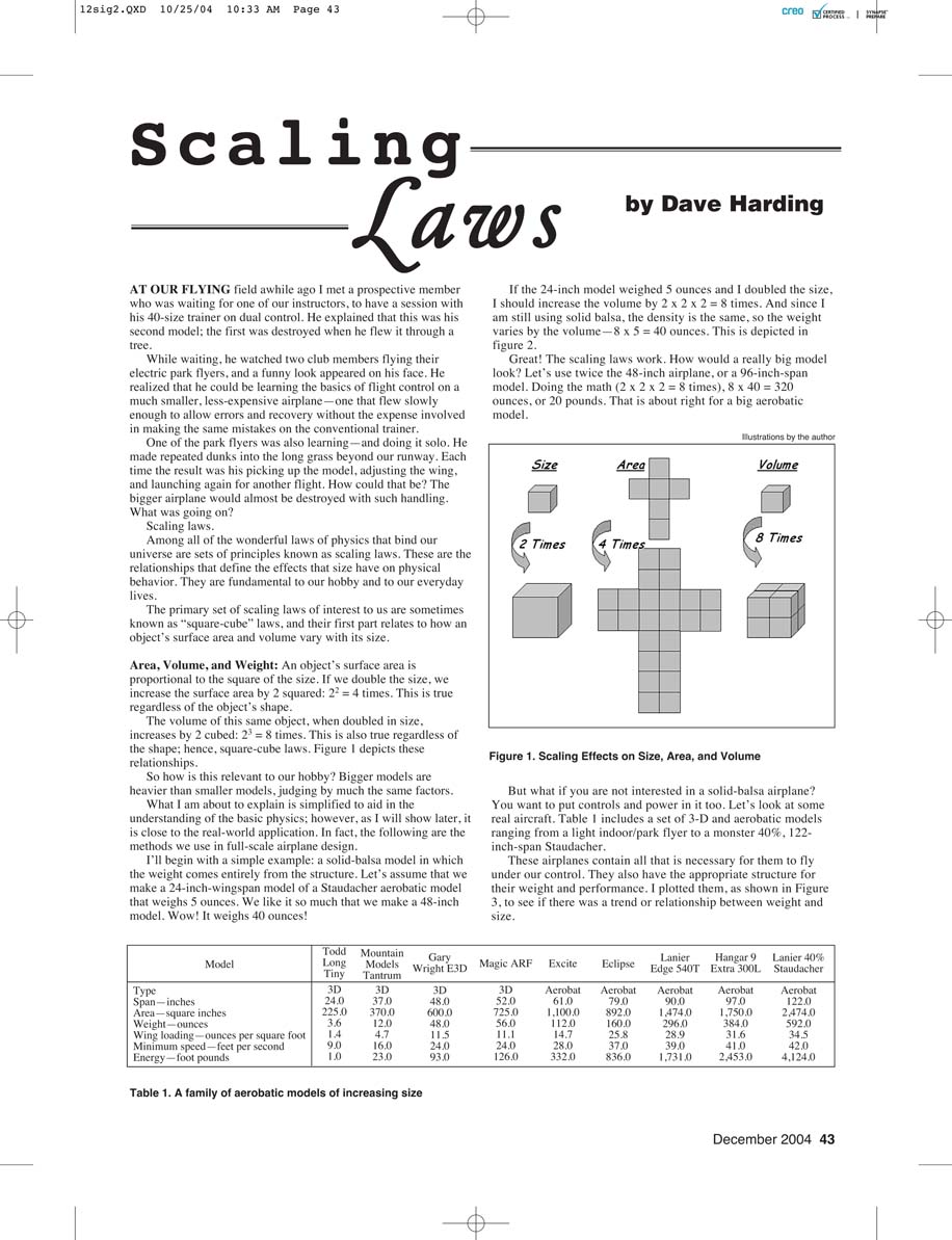 speed. When you double the size of the model, the wing area—