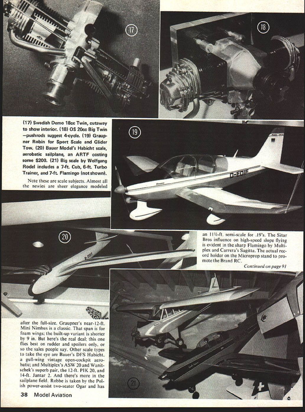 NURNBERG magnet Euro pean model trade February New exhibition halls gave space 78 somehow scene did excite pulse like before Yet lots new see no slackening attendance personalities hobby world looking prosperous after tough 1977 So should years Interna tional Hobby Fair seem shade off-key 5EI1 EIC 29th International Toy Fair Germany Model First The trend cars immense anyone thing fit crankshaft propeller diversification holds nothing air men Just about everyone ran car section booth thats way RC moving sure Second The new Halls confuse crafts kiddy books like dyed wool model hobby people identifica tion wasnt clear cut enougheven extent some long-established manu facturers took lot hunting down will course cured next time Third There signs running out outstanding ideas Imaginative trendsetters getting scarcer model plane field Now have electrics ducted fans engines CO2 90 sailplanes plastic scale types kind Among noteworthy products show 1 Topps Cobraa real hithad droop leading edge 2 Webras geared-down drive big props standard engines 3 Topps Mir age 2000 pusher delta-winged RC 4 Shark twin C02 Harden Associates 5 Multiplex 20-powered sport/trainer new RC sports trend 6 Robbe scale Ogar Polish powered sailplane glass-fiber fuselage 140-in span 7 Svenson Belgium scale Fieseler Storch 8-ft beauty full STOL abilities Ron Moulton Aviations co pondent reports world-wide trends presents selected highlights June 1978 35 36 Model Aviation fidelity kits theres no space shelves themits time think hard dealer could have spent fortune ordersand still made wrong decisions year unless clear understanding way custom ers going thinking Whos know sailplane going soar greater popularity RC thermal slope soarers topsellers Europe whether stay way pricey sophistication another guess Deutsche Mark 50 cents German prices heading 300-dollar glider money get lot model Like 150-in Ascale Astir Klinger Wik its 1/5scale sister 143-in Twin Astir Car reras big Mistral over 14-ft span SBIO around 17 ft 8 Jerry Nelson Vaclav Horcicka HP discuss Gold Cup engine 9 OPS 15cc Marine 10 Jaures Garofoli Supertigre latest 46 11 HBs Car Special 35 engine AC cars over whelming trend Europe 12 Kato Iits new mini version Prettners Cu rare 13 Sectioned display Webra 91 brute engine power match 14 Multi CO2 units Harden drive big propsup 16 15 Marx Elek tro-Jet has Duoperm 36v 20A motor triple nicads drives 7-5 prop impressive ly Recharge contacts located mock pipes rear 16 HP Gold Cup 61 NO OCR TEXT 17 Swedish Demo 18cc Twin cutaway show interior 18 05 20cc Big Twin push rods suggest 4-cycle 19 Graup ner Robin Sport Scale Glider Tow 20 Bauer Models Habicht scale aerobatic sailplane ARTF costing some $200 21 Big scale Wolfgang Rodel includes 7-ft Cub 6-ft Turbo Trainer 7-ft Flamingo shown Note scale subjects Almost newies sheer elegance modeled 11-ft semi-scale 19s Sitar Bros influence high-speed slope flying evident sharp Flamingo Multi plex Carreras Sagitta actual rec ord holder Microprop stand pro mote Brand RC Continued page 91 after full-size Graupners near-12-ft Mini Nimbus classic span foam wings built-up variant shorter 9 heres real deal flies best rudder spoilers sales people say Other scale types take eye Bauers DES Habicht gull-wing vintage open-cockpit aero batic Multiplexs ASW 20 Wanit scheks superb pair 12-ft P1K 20 14-ft Jantar 2 theres sailplane field Robbe taken Pol ish power-assist two-seater Ogar has 38 Model Aviation lined up mechanical line force remove tendency blade change pitch working would advantageous especially thin blades used Another design consideration preces sion no confused preces sion force created through gyroscopic action prop rotation Precession simply moving ahead point thrust would normally applied blade propeller arc normal blade shapes center line thrust coin cides line passes through center engine shaft looking front shaft top view pro peller blade center line rota tion blade angles created center As blade moves through arc rotation con sidered line along thrust generated Pitch also measured line center line thrust can moved ahead center line rotation effective angle blade arc rotation will increased changing physical angle advantage precession crease pitch adding drag Drag created physical angle blades precession change physical angle effective change pitch can used advantage air craft requires 7 pitch terminal ve locity precession prop pitch can 6 example will still have effective pitch 7 lower drag 6/4 physical pitch plus factor combined lower drag will allow engine rpm power drawback precession moves center line thrust away line mechanical force torsional rotation force created possible rigid blades torsional rotation force could disregarded taking advan tage precession instead stan dard prop shape precession added shown diagram No 4 Diagrams No 5 6 show design factors can incorporated blade shape Before finalizing ideas may wish try custom made props type blade airfoil should considered considerations blade airfoil same wing wish greatest lift possible least amount dragthe old L/D ratio again Secondly air speed should con sidered Formula propeller stance average blade air speed about 350 mph tip speed ap proaching sonic range An airfoil de veloped speed ranges would efficient modern airfoils have excellent lift-drag ratio far less drag older styles amount drag reduced serious loss lift result same adding horse power part II will show can transform thse ideas actual props own workshop Additionally will explain test tailor particular needs Nurnberg/Moulton continued page 38 Just gliders mostly scale eyccatching power kits after seeing Katos 20 & 40 versions Prettners Curare host electrics ranging Aeronauts BD-5 Udet Flamingo Graupners Elektra-fly Elektro-Max Queen show scribe undoubtedly 8-ft Svenson Storch 60s Its big rugged functional intended fly STOL lots power big prop fine pitch Fixed slats power ful flaps tail feathers plus longstroke landing gear rest won der no German firm did