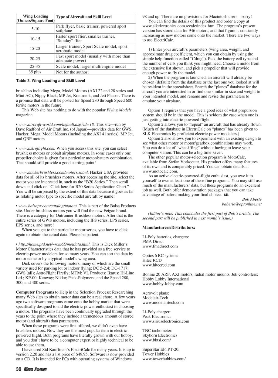 specifically designed to aid the electric-power enthusiast in choosing