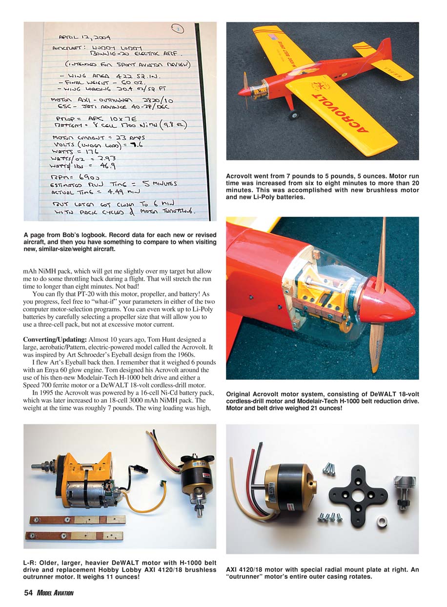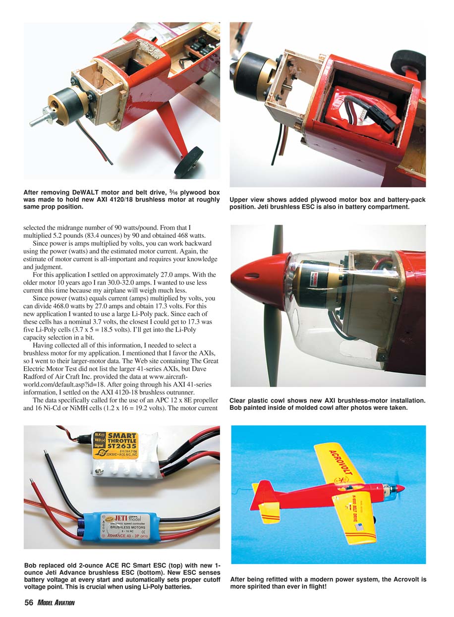 with an Enya 60 glow engine. Tom designed his Acrovolt around the