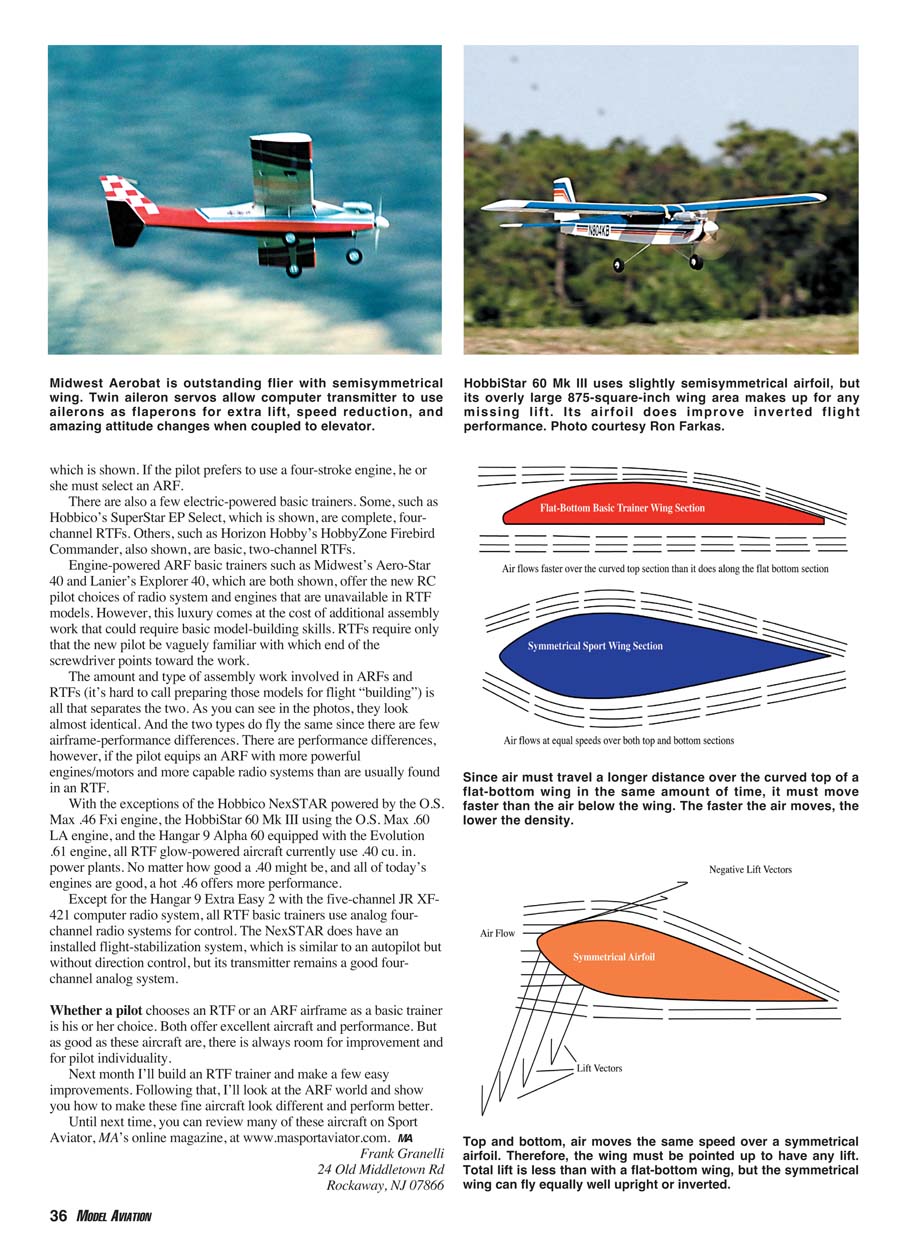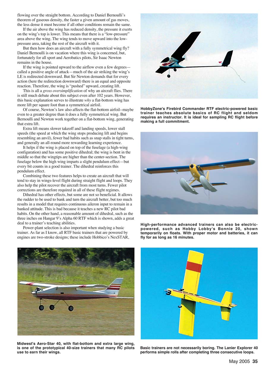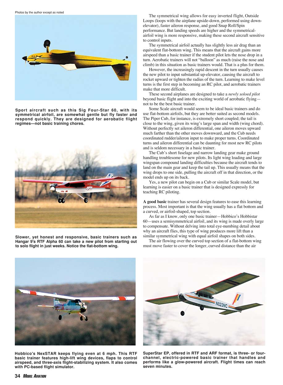 trainers, biplanes, second aircraft, sport models, 3-D performers, and