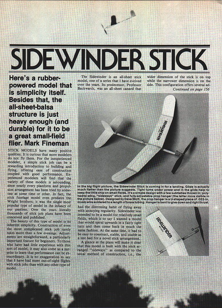 PROP-S 1/2 INCH PROP HANGER- SOLDER 1/16 DIA BRASS TUBE TO 032 MW TOP ViEW --H-1/4 INCH DIA REAR HOOK PEDESTALI FIN cT SIDE VIEW WIflDER ISTICK I STICKI/B XI/4X12 WING- 1/16 SHEET TAIL 1/32 SHEET FORMER POLYHEDRAL BREAK WING FORMER- I/B TO CREATE POLYHEDRAL FIRST GLUE IN 2 1/2 INCH DIHEDRAL EACH WINGWHEN DRY ADD INCH TO WINGTIPS CAN L