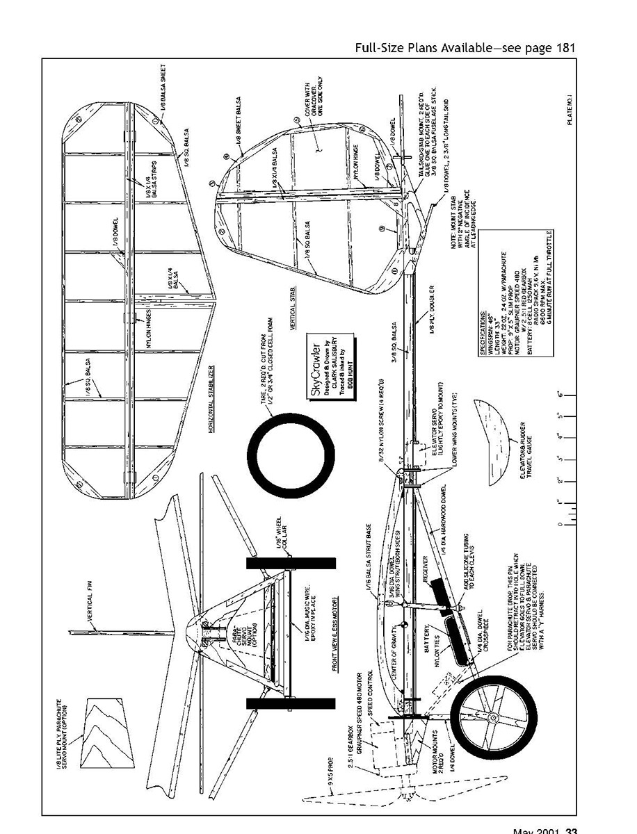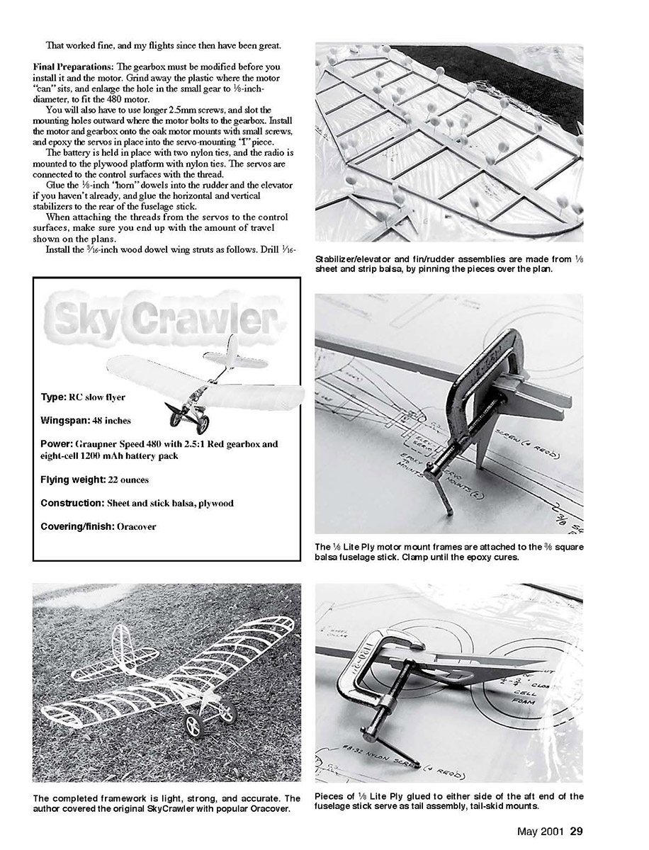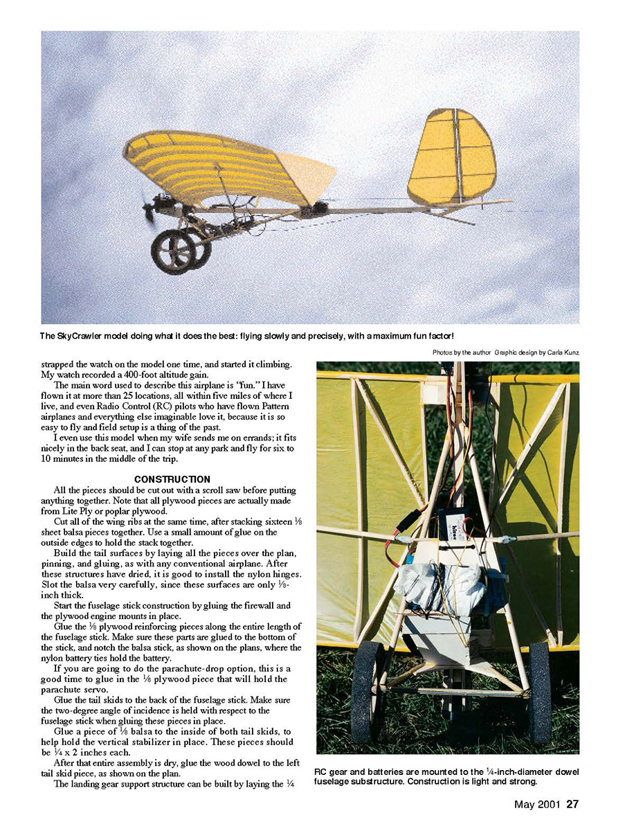 RC gear and batteries are mounted to the 1⁄4-inch-diameter dowel
