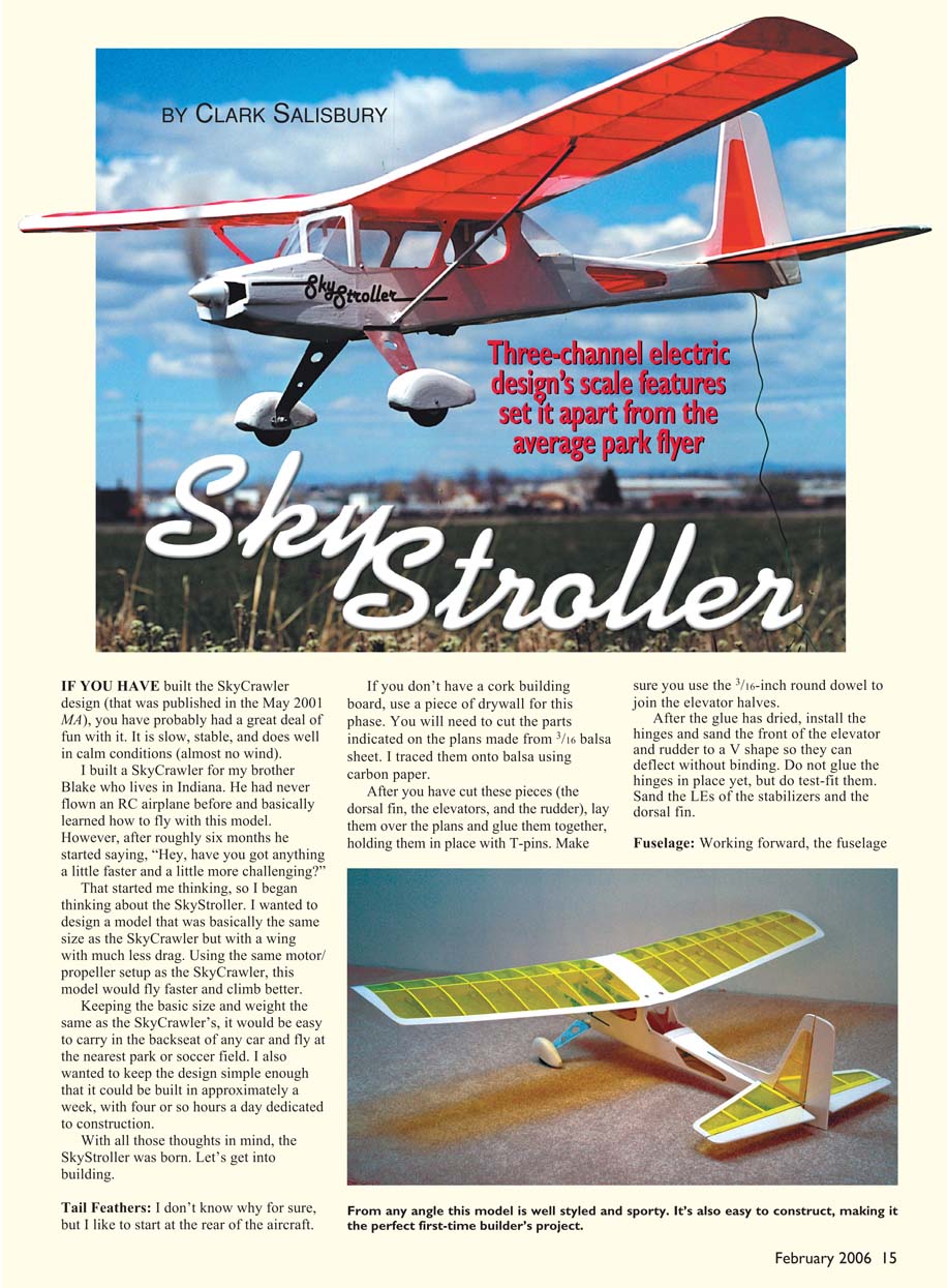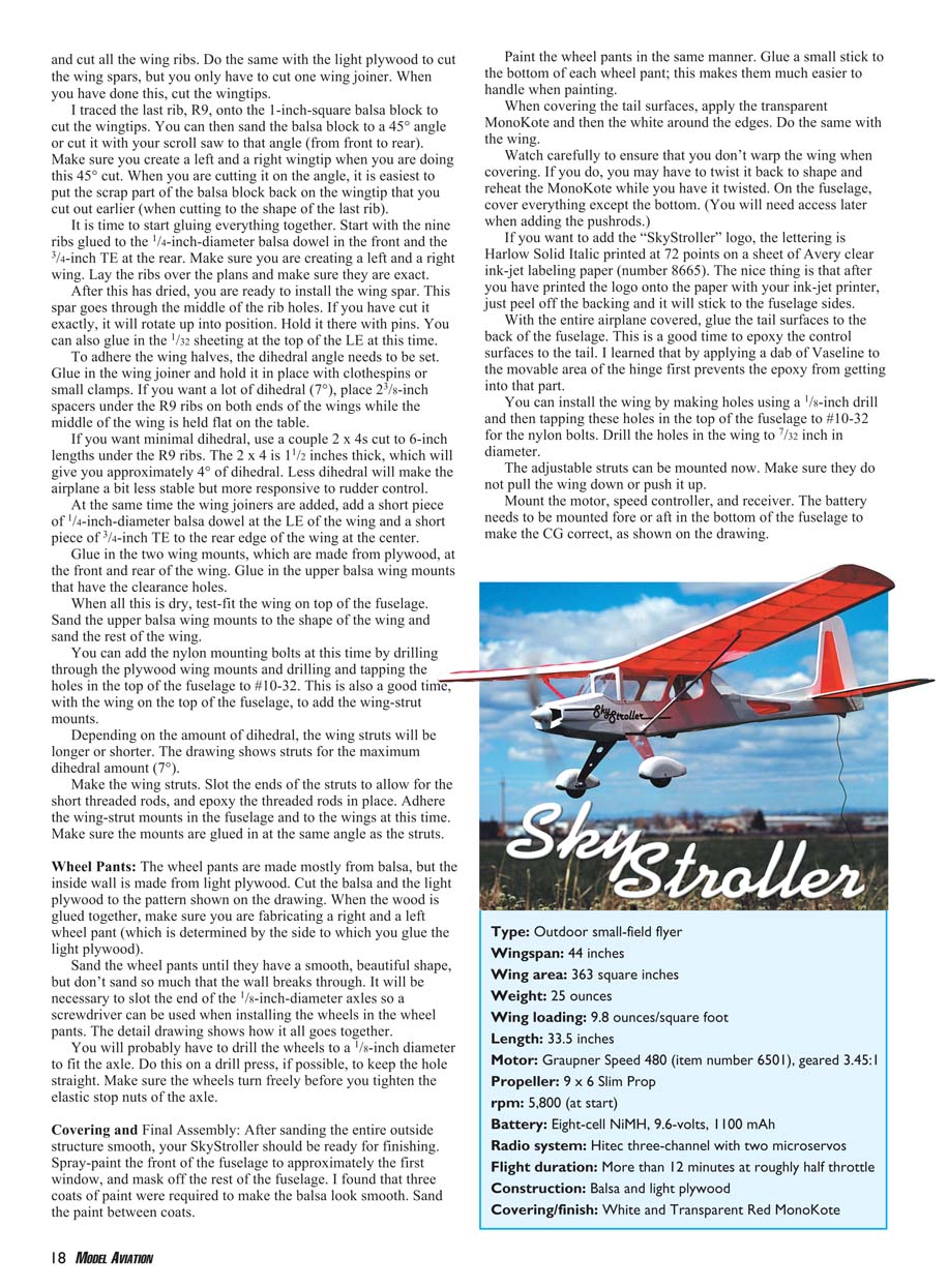 The SkyStroller’s tail feathers are a combination of sheet and stick balsa. They are