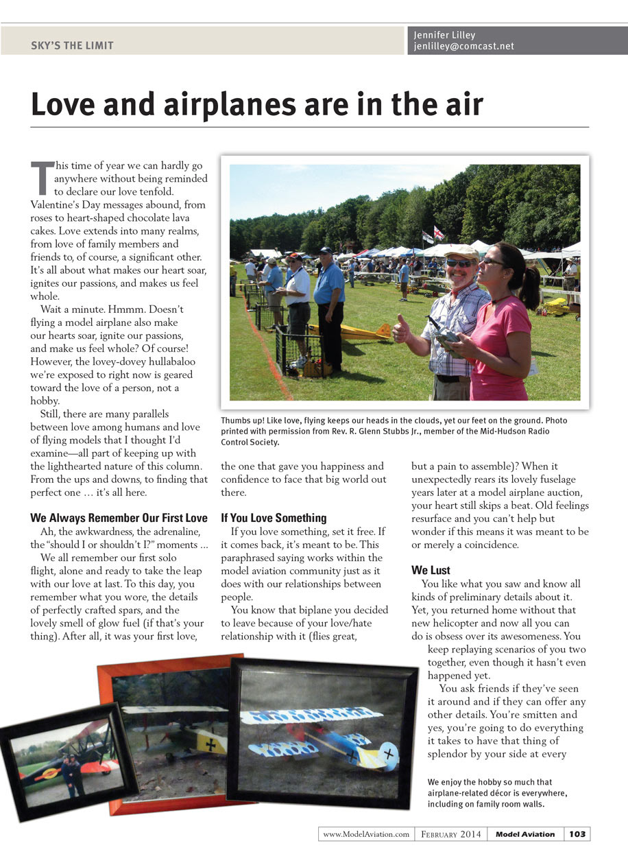 Wait a minute. Hmmm. Doesn’t flying a model airplane also make our hearts soar, ignite our passions, and make us feel whole? Of course! However, the lovey-dovey hullabaloo we’re exposed to right now is geared toward love of a person, not a hobby.