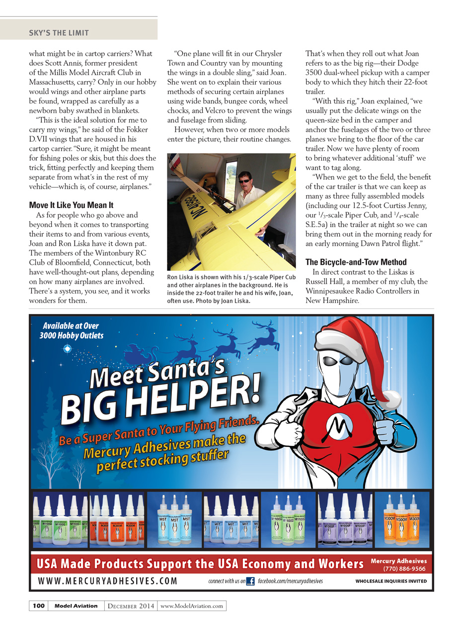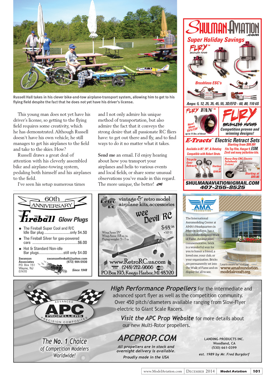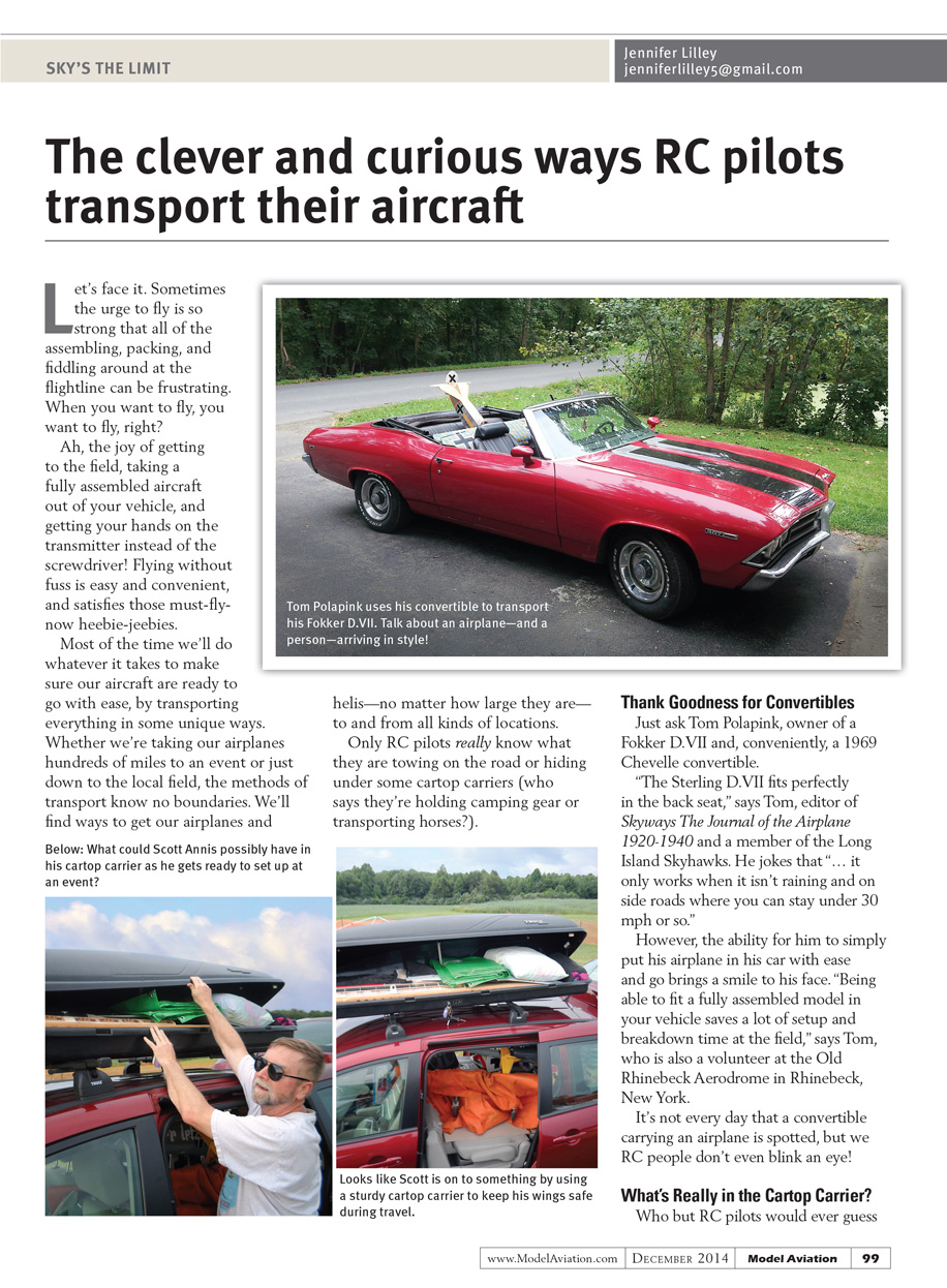 Send me an email. I’d enjoy hearing about how you transport your airplanes and helis to various events and local fields, or share some unusual observations you’ve made in this regard. The more unique, the better!
