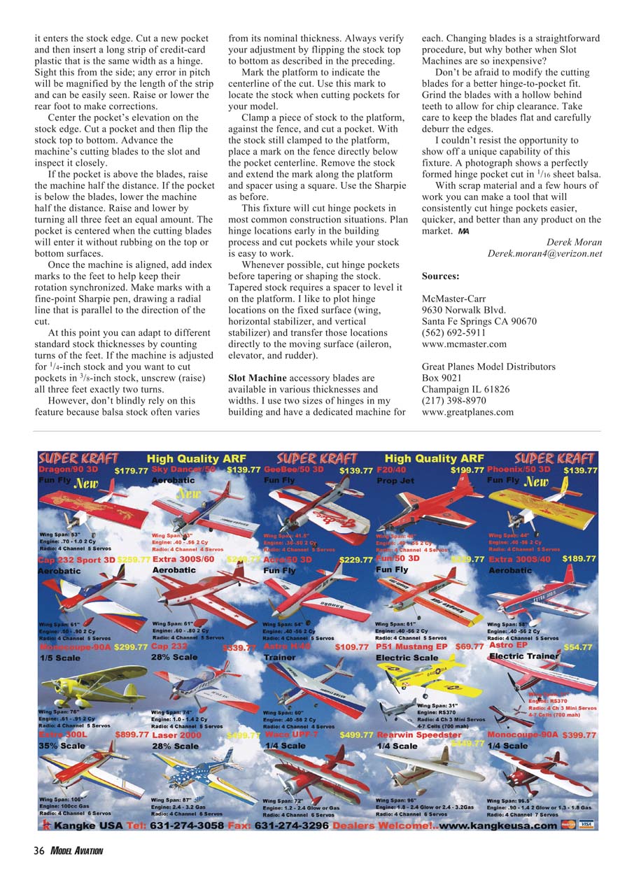The author cut these hinge pockets in 1/16 sheet balsa. He used