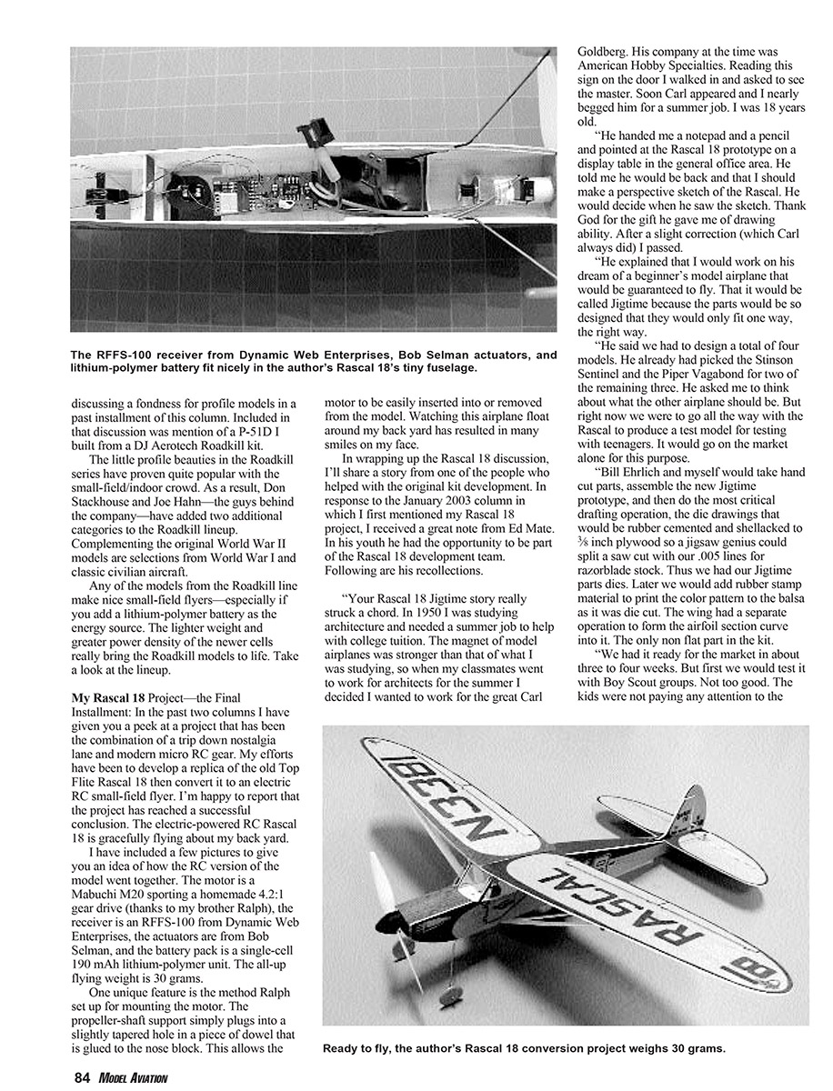 lithium-polymer battery fit nicely in the author’s Rascal 18’s tiny fuselage.