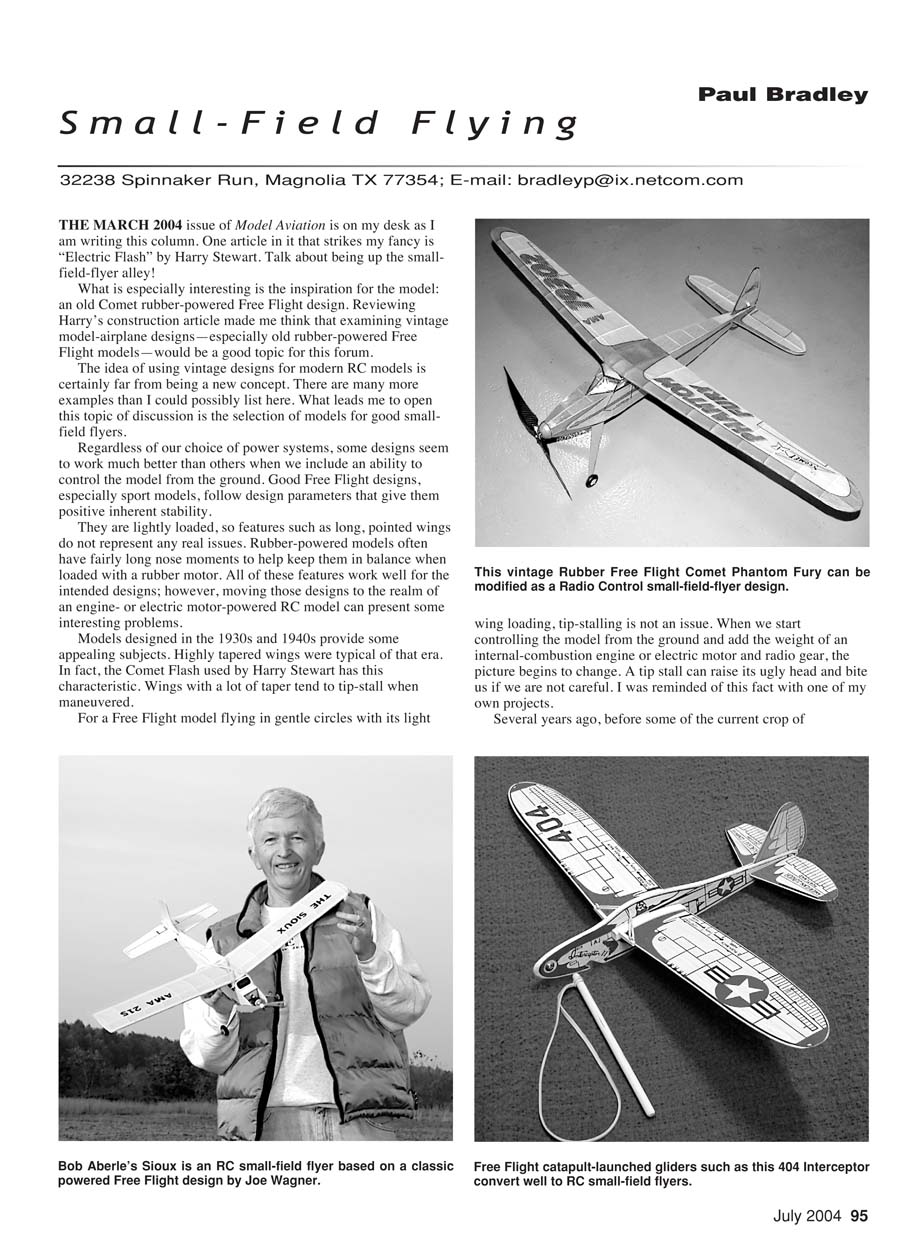 control the model from the ground. Good Free Flight designs,
