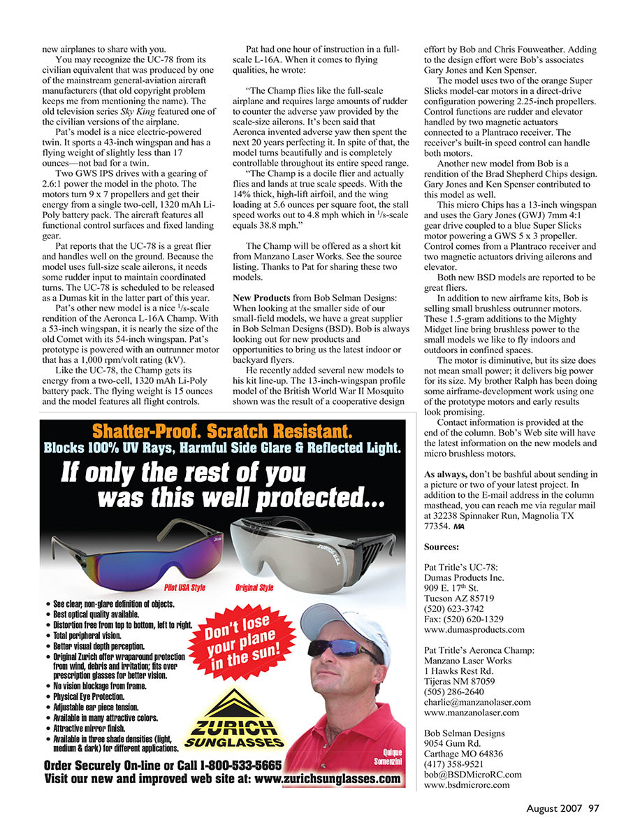 The 53-inch-wingspan Aeronca Champ, another new Pat Tritle design, is docile. It flies