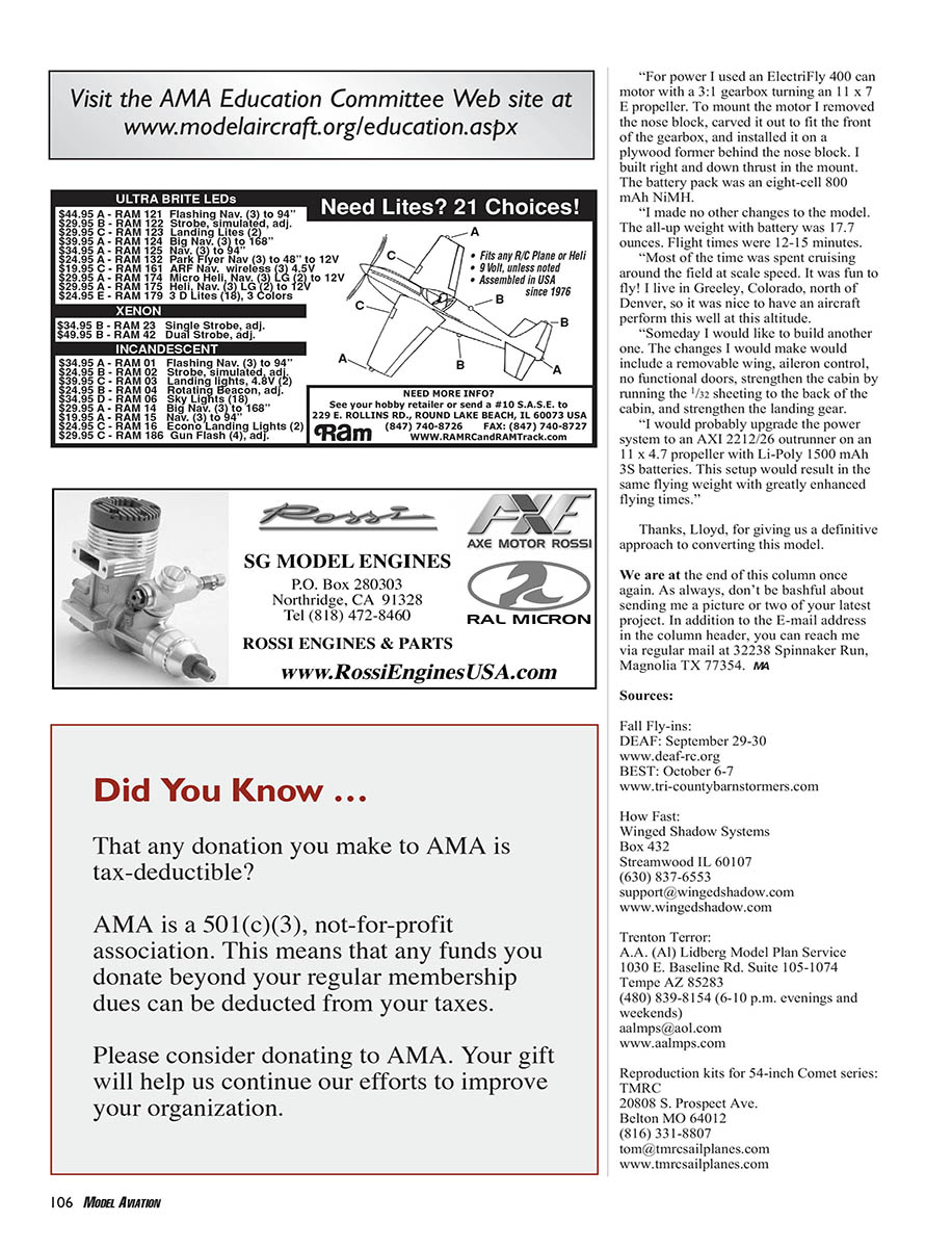 drive turning a 7 x 6 propeller. Its energy comes from a fourcell