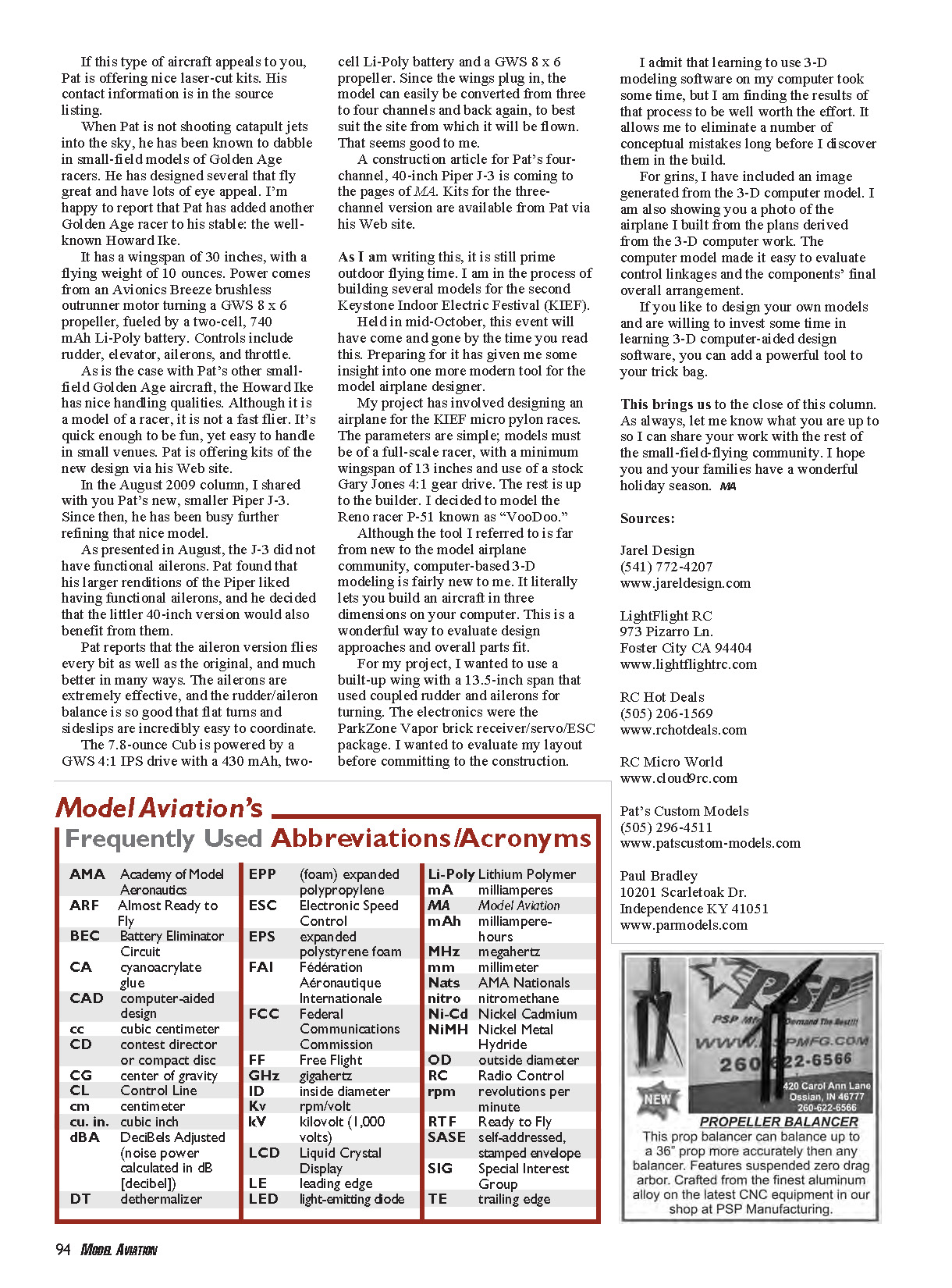 Pat Tritle added ailerons to his 40-inch-span J-3 Cub. They have proven to be effective;