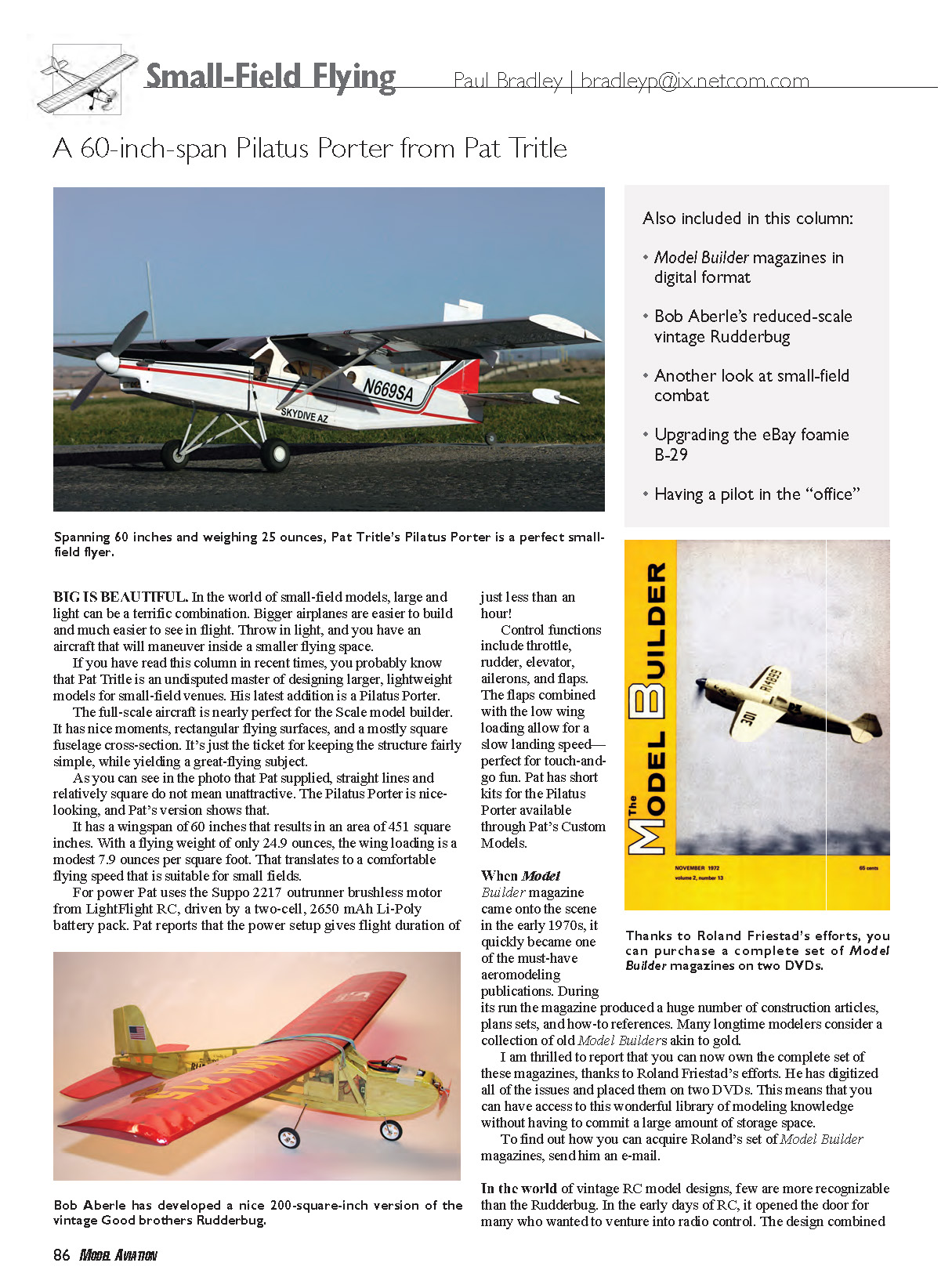 Spanning 60 inches and weighing 25 ounces, Pat Tritle’s Pilatus Porter is a perfect smallfield