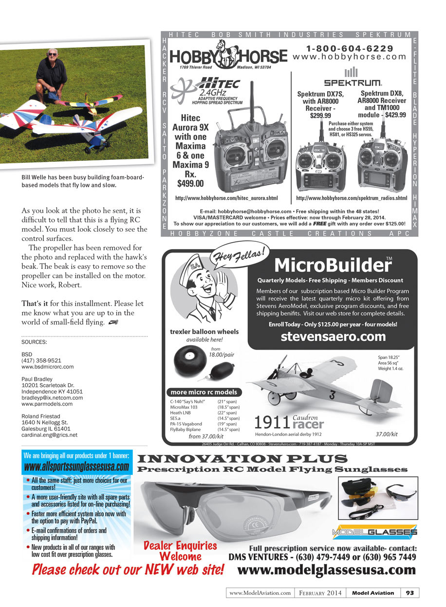 In my February 2013 column, I shared with you several models built by Florida modeler Bill Welle. You may remember his foam-board-based autogyro and enlarged Comet Sparky.