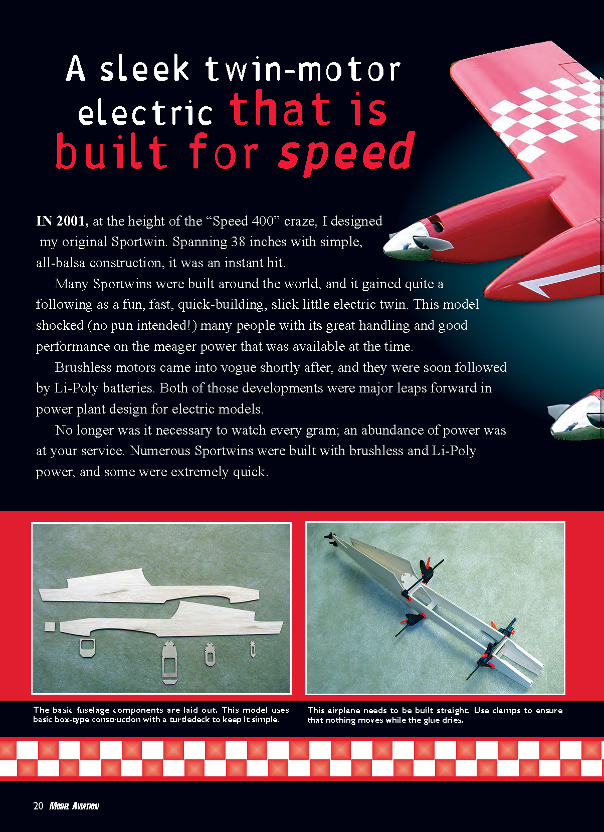 following as a fun, fast, quick-building, slick little electric twin. This model