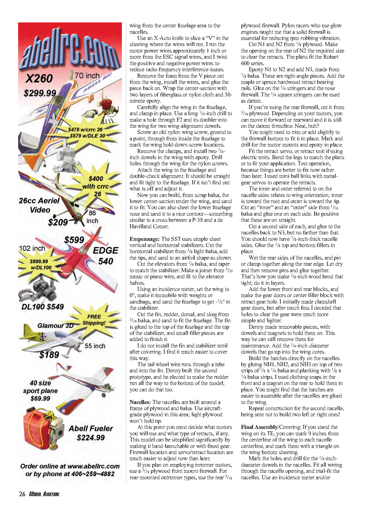 Construction: Balsa-sheeted foam wing; balsa-andplywood