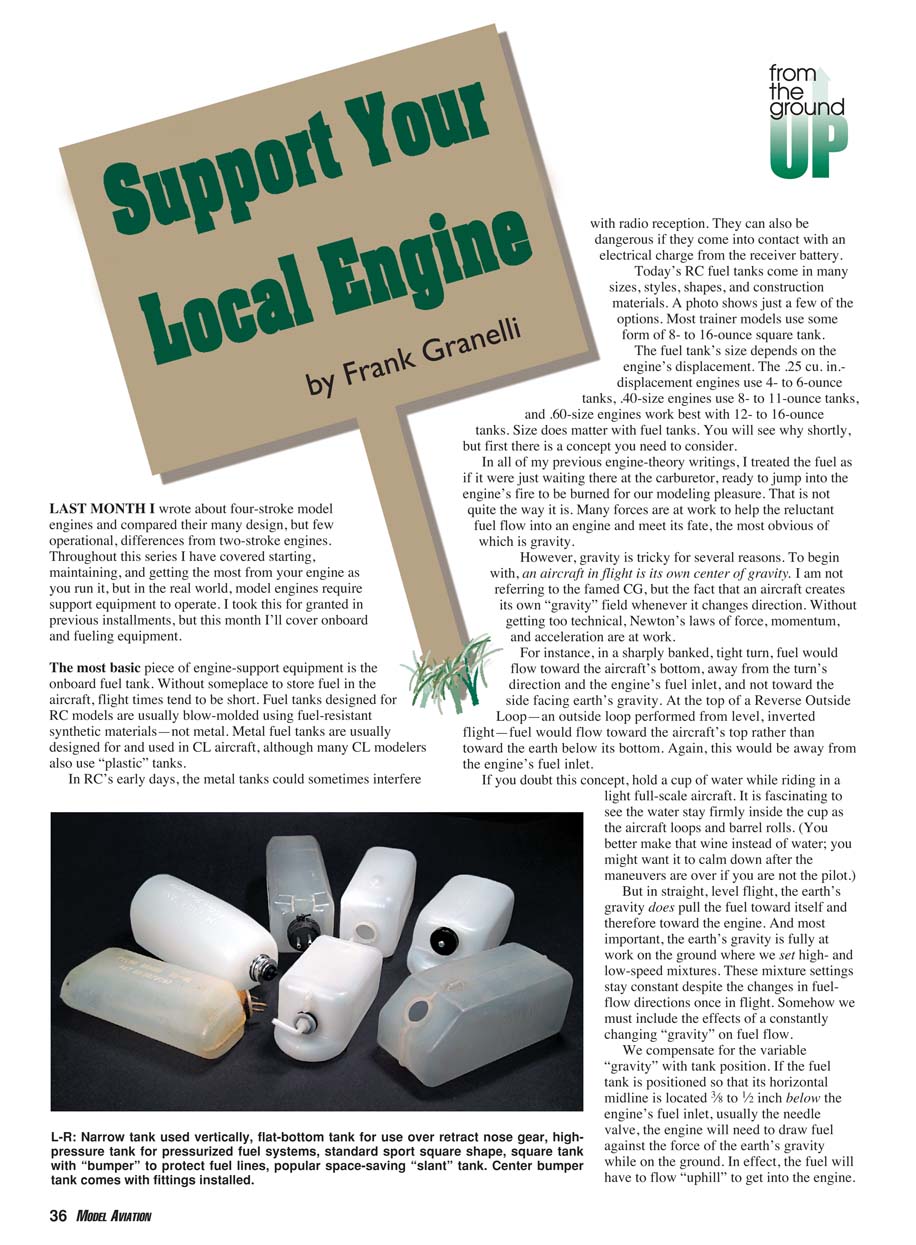 tanks, .40-size engines use 8- to 11-ounce tanks,