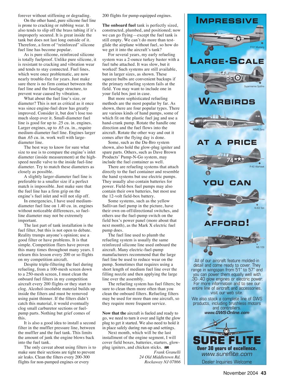 .65 engines without fuel pumps—most trainer engines—the fuel
