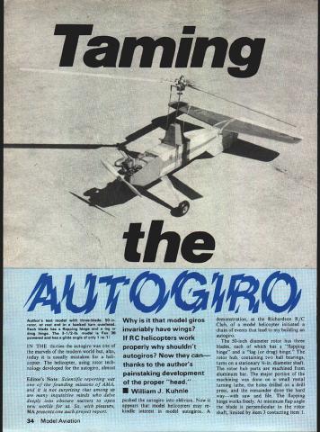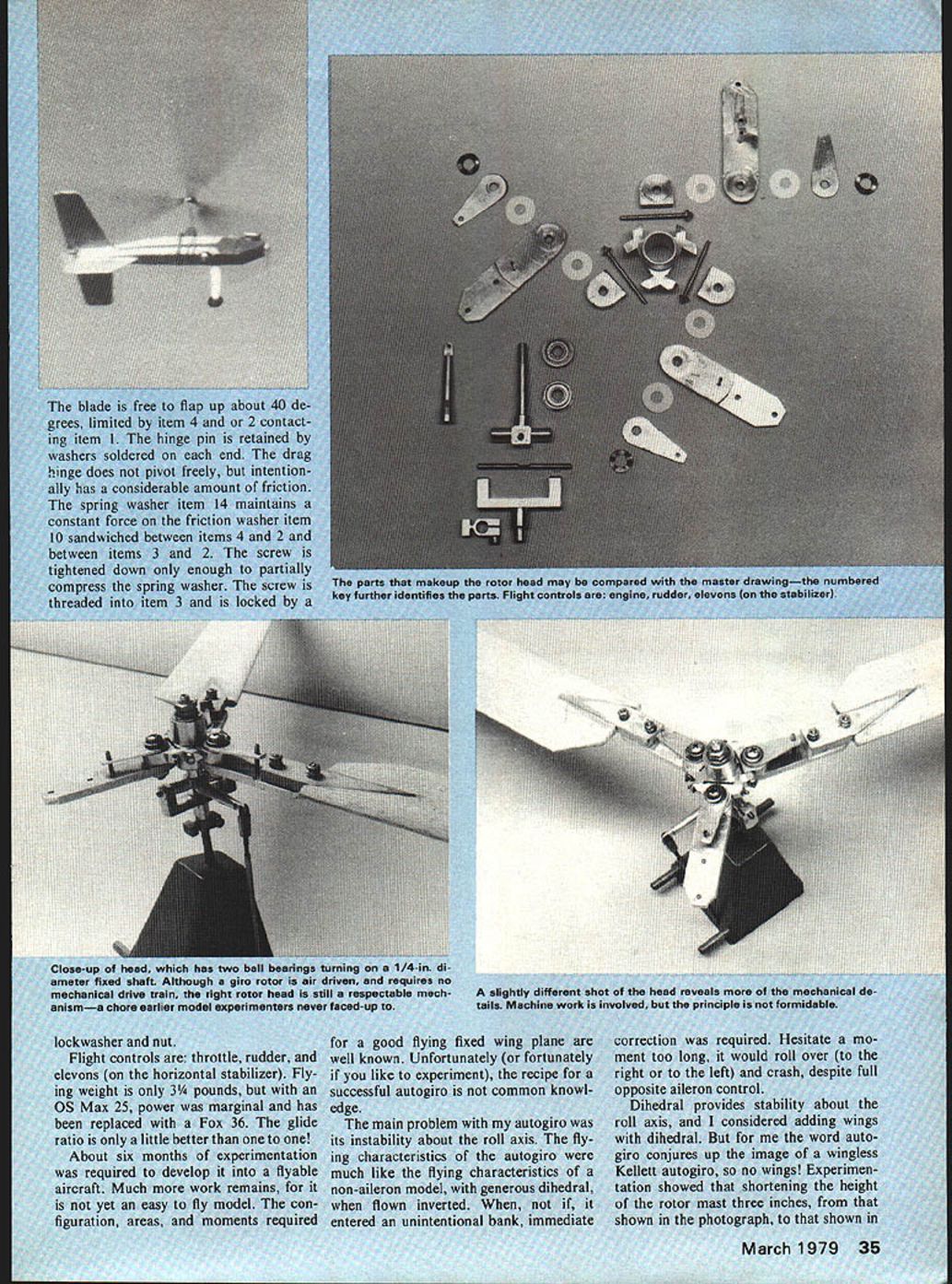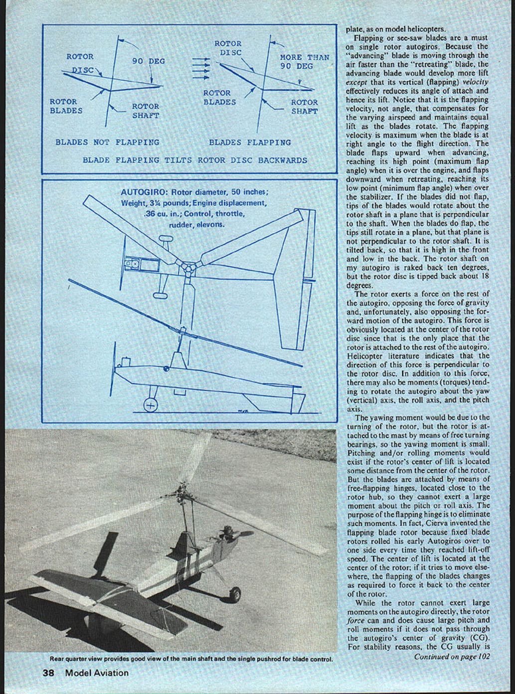 that v have copters vhy shoL NO OCR TEXT IoO3 / 2 22 23 15 6 14 0 4 21 20 26 188 DIA 1~ 0 K 1325125 OIA 0 o 82 mr vi 37 DA i-JIo 50 DIA 02 KERF-42PLAT9O ~ir7 / Tr 1/\ 094 DIA625 DIA 3 PL [N II i 0 I50-2 SPIITEM jI REQD U K 3 I 000 350t~I ilL 096 O1A 189 DIA ITEM 4 475O - DIA UIn II ON 125 PL 3 REQD 632 THO 25 OP DIA DIA /067D1A7 4 0 ITEM 61 R0DITEM 71 REQO 189 IA 375 140Ifl 4 094 DIA ITEM 2 3 REQD 295 1500 no THD hA Ll -r DIA -1I 00 0 s 0 0 O~O 0 0g0 0.00 WB 0 S 0 0 0 0 0 0 I. 0 ~oEC 0 4-Q 4- 00 0 ITEI OR LFT N TING BJ compot componi componei blade attack bi attach e wind velocity ef ROTOR DISC ES FLAPPING DISC BACKWARJ 50 inches pIacement ottle n model helicopi g see-saw bi rotor ing blace m retr blade would tnat its vertical rely reduces its s lift Notice angle t airspeed ROTOR Sc NOT BLADE slogans taught us Dental School Dee B Mathews 506 S Walnut Greensburg KS 67054 Taming Autogiro/Kuhnle continued page 38 located slightly forward rotor force resulting nose-down pitching moment counterbalanced setting stabilizer pushed tail down same force arrangement used fixed wing planes except rotor force replaces combined lift-drag force wing good wing has relatively little drag lift-drag resultant almost vertical CG appears almost directly below wings center lift churning rotor blades create large amounts drag rotor force inclined relatively large angle respect vertical addition rotor usually located much higher above CG wing Because two factors though CG located slightly forward rotor force CG will located relatively large distance front rotors center giv ing erroneous impression center lift forward rotors cen ter proper location CG autogiro determined flight testing about three inches forward center rotor held loosely rotor hub fuselage hangs nose down angle about 20 degrees horizontal rotor disc tips back about 18 degrees thus confirming CG should lie slightly forward line drawn through center rotor perpen dicular plane blade tips rotate autogiros forward speed causes rotor disc tilt backward respect rotor shaft rotor disc also tilts sideways high retreating blade side due interaction between ward speed coning angle blades rotor force tilted side ways tending roll autogiro away retreating blade side rotor autogiro turns clockwise seen above side tilt rotor disc tries roll giro left can counteracted devon trim found satisfactory tilt top rotor shaft about three degrees retreating blade side right side Before building autogiro searched through large collection model maga zines found little useful information However did find book Aero dynamics Helicopter Gessow Myers Frederick Ungar Publishing Co NY very helpful understanding rotor blade motion [When writing advertisers mention read about Model Aviation CL ScalelGretz continued page 44 metering jet through spray orifices metered charge mixed air resulting combustible mix ture fuel air under pressure opens valve passes com bustion chamber fired spark plug receives its initial electric impulse external spark coil pressure resulting combustion closes valve sets up pressure wave tail pipe engine Once initial charge has inducted fired above opera tion automatic No further external forced air supply spark required pressure wave set up exhaust pipe firing initial charge cyclical nature first becomes negative pressure drawing another tered charge gasoline air through valve combustion chamber next becomes positive pressure closing valve firing new charge air hot gasses re maining previous combustion process repeated automatically rate 220-240 times per second long gasoline air supplied Well let Sam finish story unique brand CL Scale flying XF-92A weighs 6 lbs complete flies approximately 21 laps speed 85-90 mph built model 1974 using old set plans Air Trails magazine 1954 scale 1 inch foot has wingspan 31 inches 44 inches length Its built crutch using plywood formers bal sa planking Its finished Aero-Gloss white Air Force markings model lined internally layer asbestos paper two layers heavy-duty aluminum Reynolds Wrap foil using water-glass adhesive Around Dyna-Jet aluminum shroud 020 thick e between Dyna-Jet shroud approximately 1/2 between shroud insulation keep model catching fire Waterglass adhesive will burn As letter model has over 100 flights no problems need pit crew three people start jet holds model presses button spark coil operates air pump stay handle always airborne within two minutes ship lands open hatch pump air around Dyna-Jet cool down have building scale jets since 1954 1 flew XF-92A demo Aerolympics Scale WC 1974 Lakehurst New Jersey April 1978 1 flew model RC CL show Teterboro Airport Jay Gerber AMA HQ took film se quence jet hope will new all-scale film making needs information assistance 102 Model Aviation new CLASSIC kit prom FLYII LAKES Trainer 40 span 0925 power 4 channeLs nc $3495 complete catalog See dealer NOW No107 Fairchild 22 48 span 0915 power 3 channeLs nc $2995 FLYLINE MODELS INC 2020 DORR AVENUE B 2 FAIRFAX VIRGINIA 22031703 5732030 OUR AIM IS TO KEEP SPORT FLYING SPECIALIZING IN OT FF KITS AND ENGINES FOR THE COMPETITOR WE HAVE THE HOT EQUIPMENT s Enterprises PLANES1356 Ervin Road BOATSPO Box 227 CARSPangles Center TRAINSVan Wert OH 45896 4 Joe Guylas 4191 238-2625 WE BUY OR TRADE OLD ENGINES AND KITS