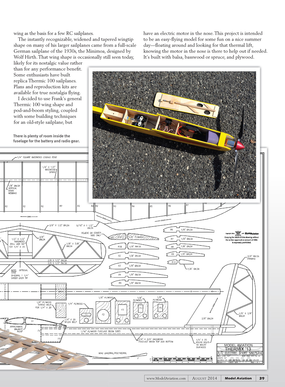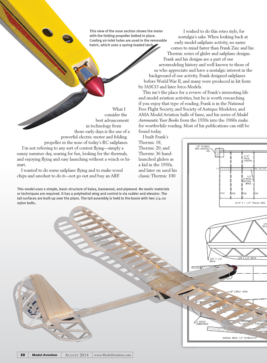 I wanted to do some sailplane flying and I wanted to make wood chips and sawdust to do it—not go out and buy an ARF. I wanted to do this retro style, for nostalgia’s sake. When looking back at the early model sailplane activity, nobody comes to mind faster than Frank Zaic and his Thermic series of glider and sailplane designs.