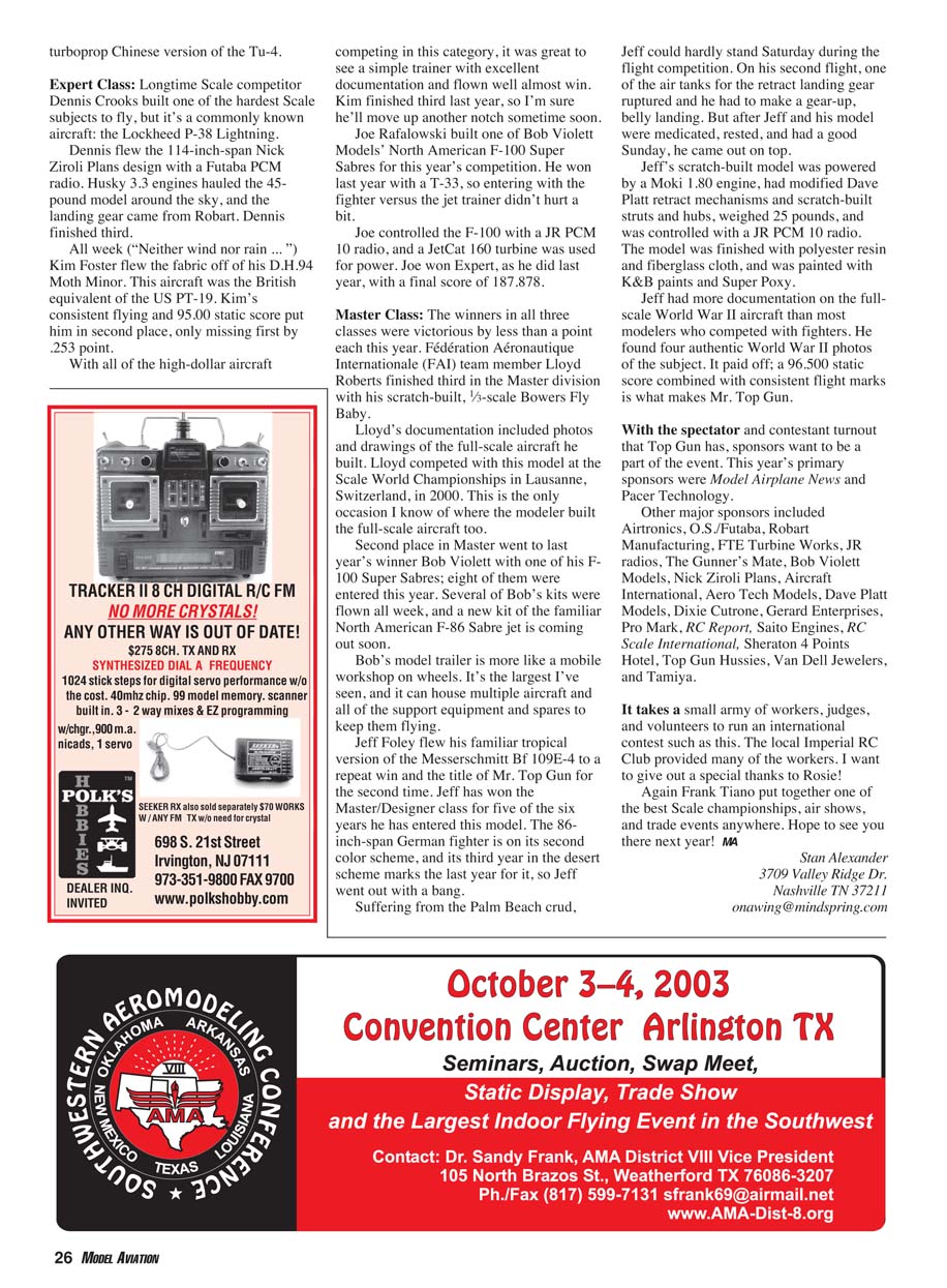contest. Dave Platt held the Scale Free Flight contest again this year,