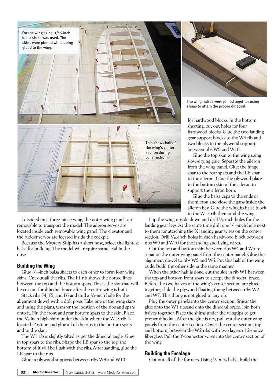 Cut out the individual surfaces from a 1/16-inch balsa sheet. To one side, glue the LEs and TEs, then glue the ribs. Flip the