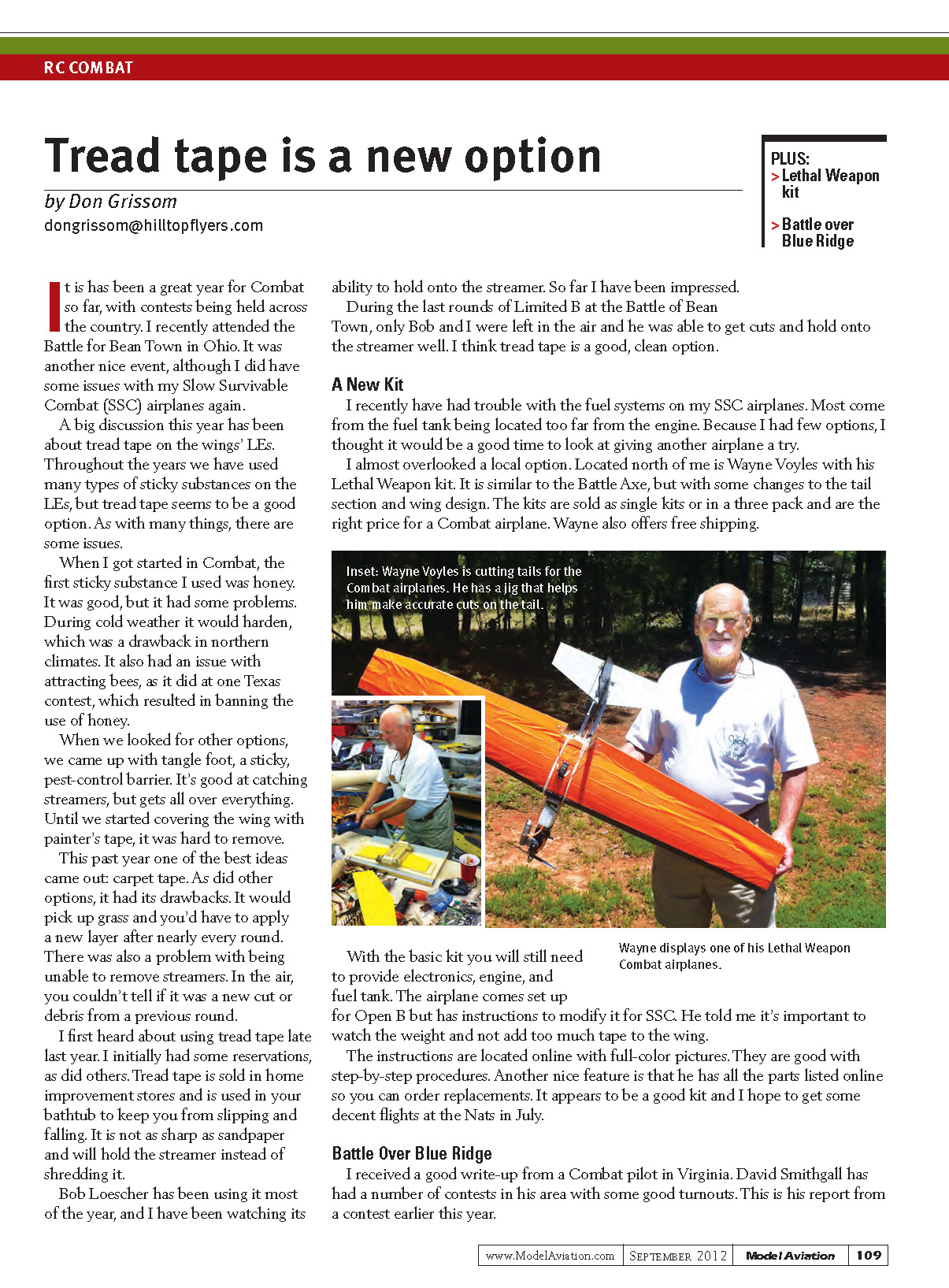 I received a good write-up from a Combat pilot in Virginia. David Smithgall has