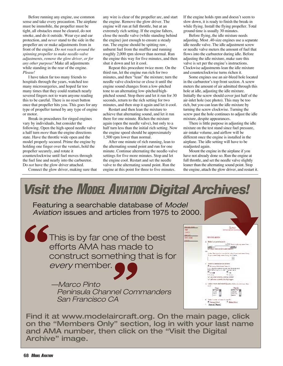 Breaking in an ABC engine is somewhat