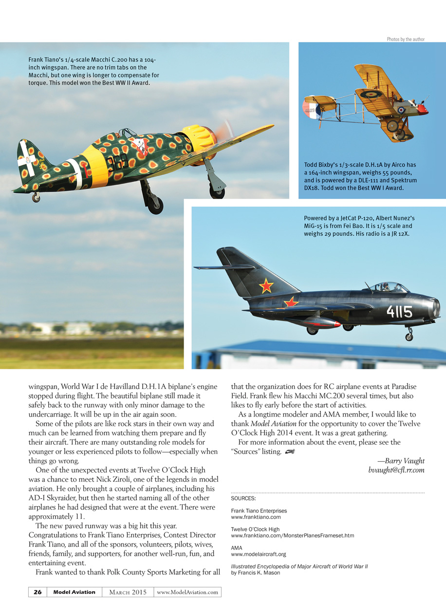 As a longtime modeler and AMA member, I would like to thank Model Aviation for the opportunity to cover the Twelve O’Clock High 2014 event. It was a great gathering.
