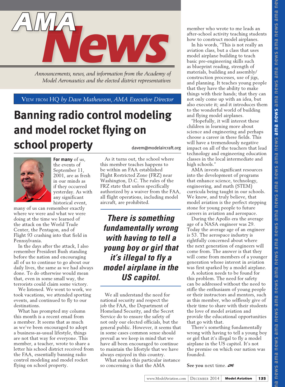What makes this particular instance so concerning is that the AMA member who wrote to me leads an after-school activity teaching students how to construct model airplanes.
