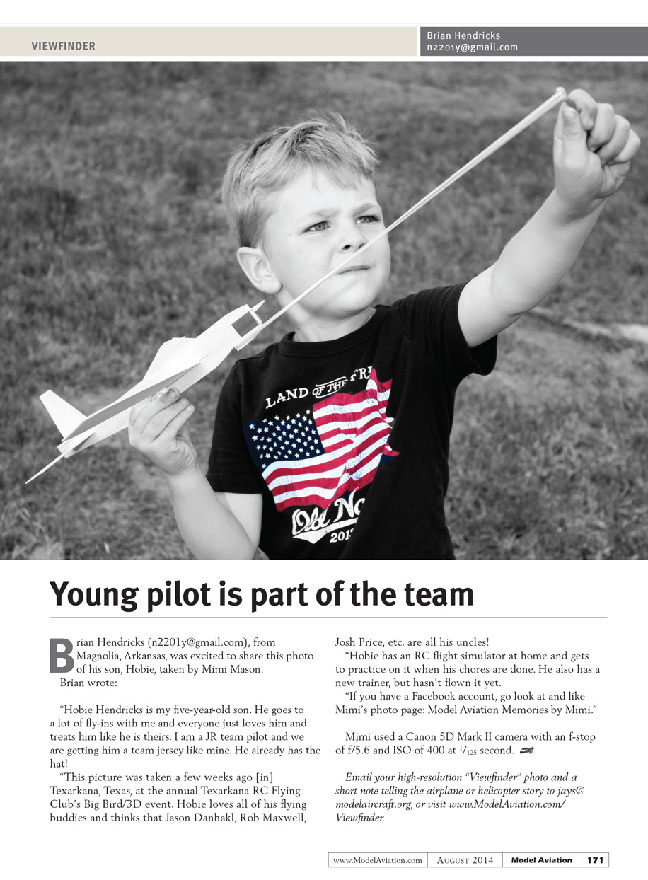 Email your high-resolution “Viewfinder” photo and a short note telling the airplane or helicopter story to jays@modelaircraft.org, or visit www.modelaviation.com/viewfinder.