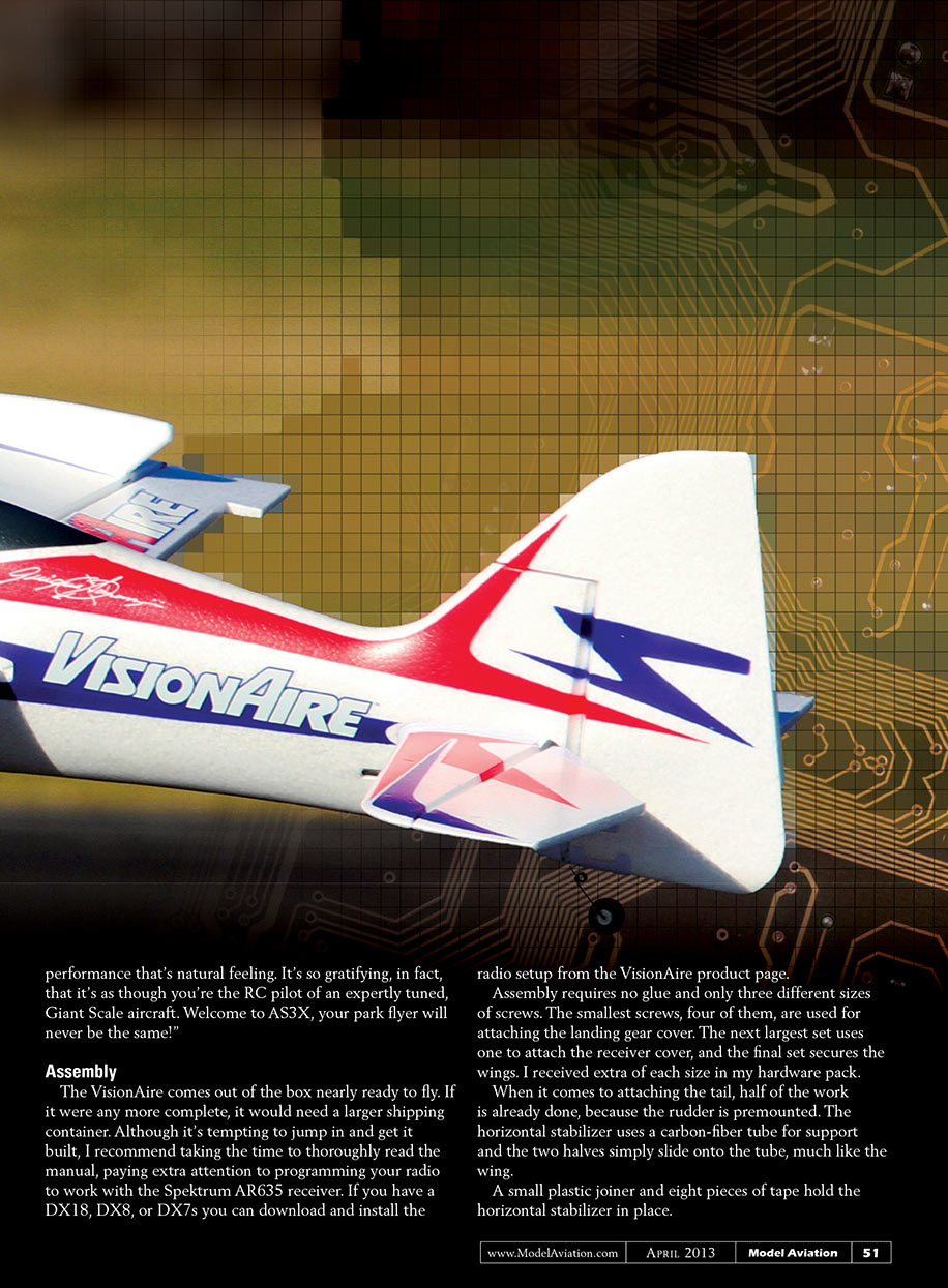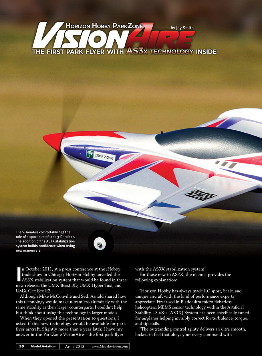 answer in the ParkZone VisionAire—the fi rst park fl yer