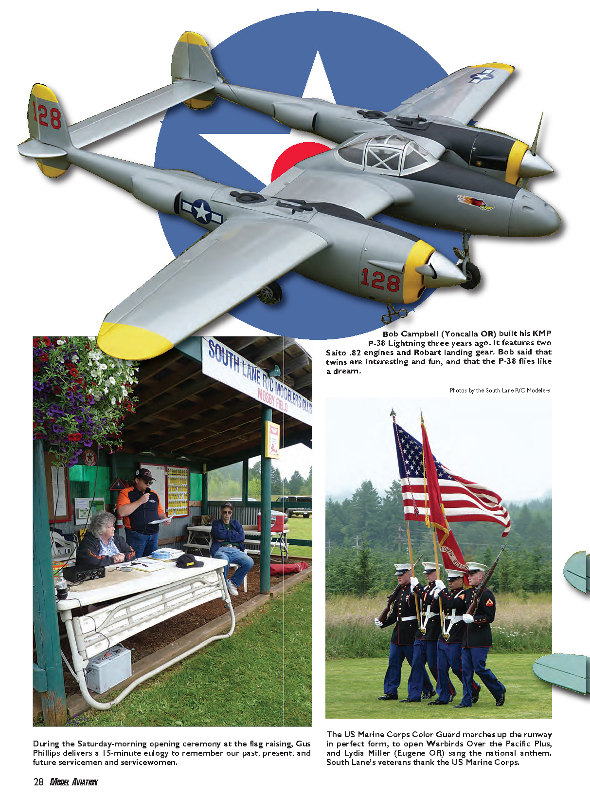 are interesting and fun, and that the P-38 flies like a dream.The US Marine Corps Color Guard marches up the runway