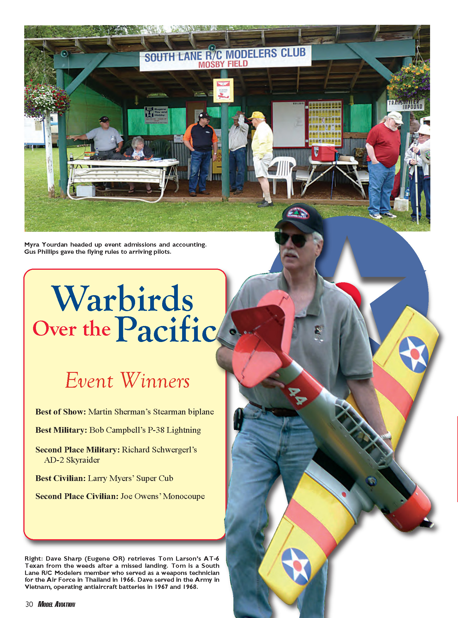 Right: Dave Sharp (Eugene OR) retrieves Tom Larson’s AT-6