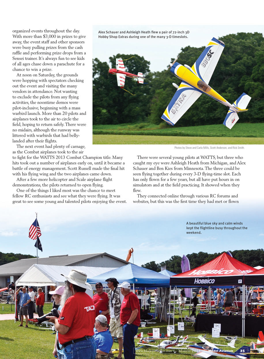 There were quite a few young pilots at WATTS, but three who really caught my eye were Ashleigh Heath from Michigan, and Alex Schauer and Ben Kies from Minnesota. The three could be seen flying together during every 3-D flying-time slot. Each has only flown for a few years, but they all have put hours in on simulators and at the field practicing. It showed when they flew.