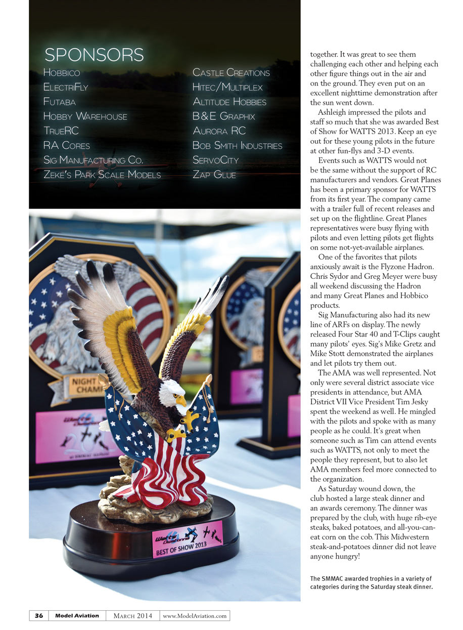 Ashleigh impressed both pilots and staff so much that she was awarded Best of Show for WATTS 2013. Keep an eye out for them in the near future at more fun-flys and 3-D events.